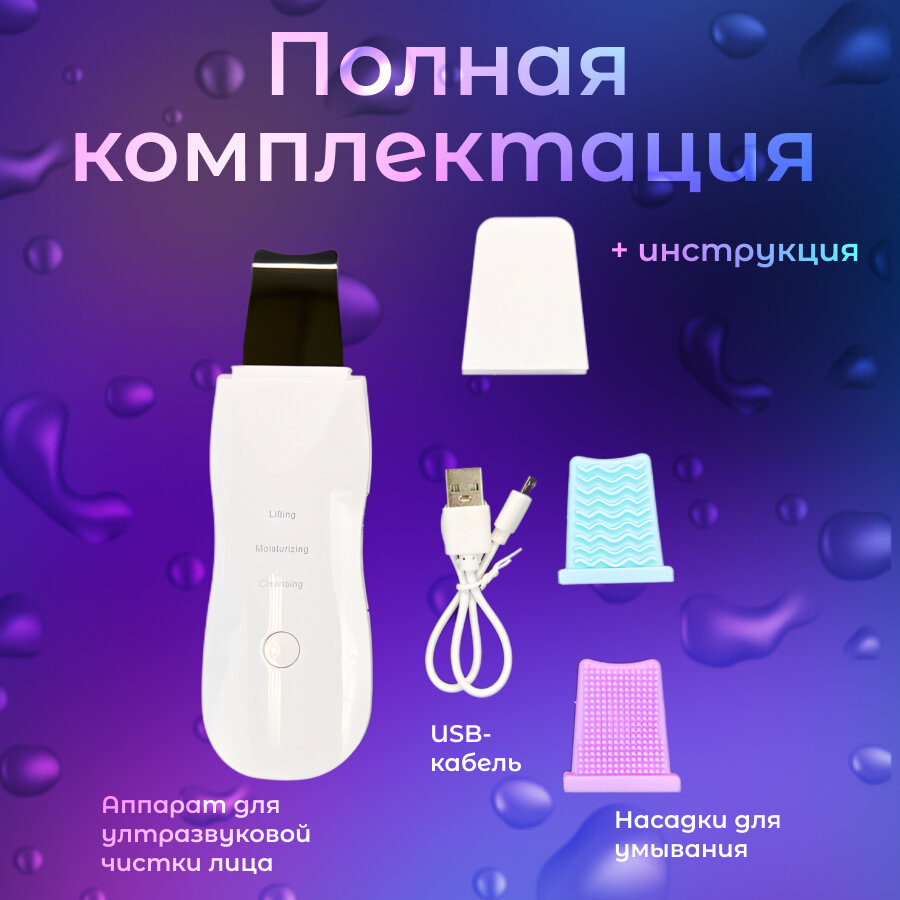| Комплектность | Аппарат для ультразвуковой чистки лица, 2 насадки для умывания, USB - кабель, инструкция. |