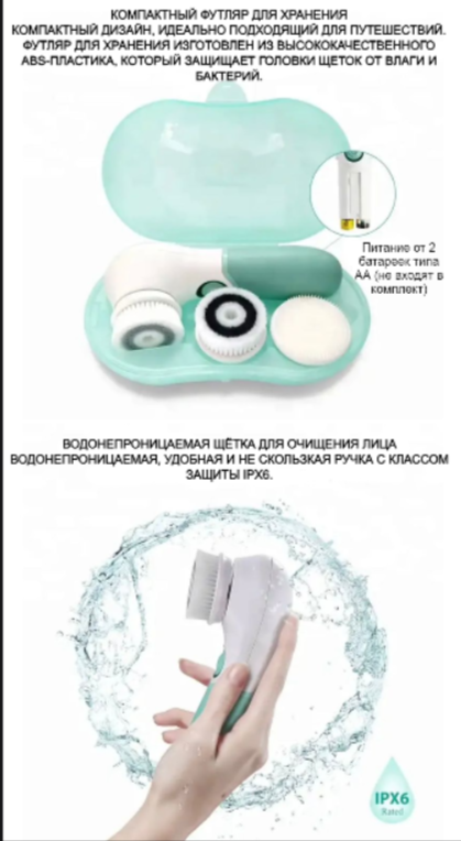 | Комплектность | Кейс для хранения, Массажная электрическая щётка для лица, Сменные насадки, Заводская упаковка. |