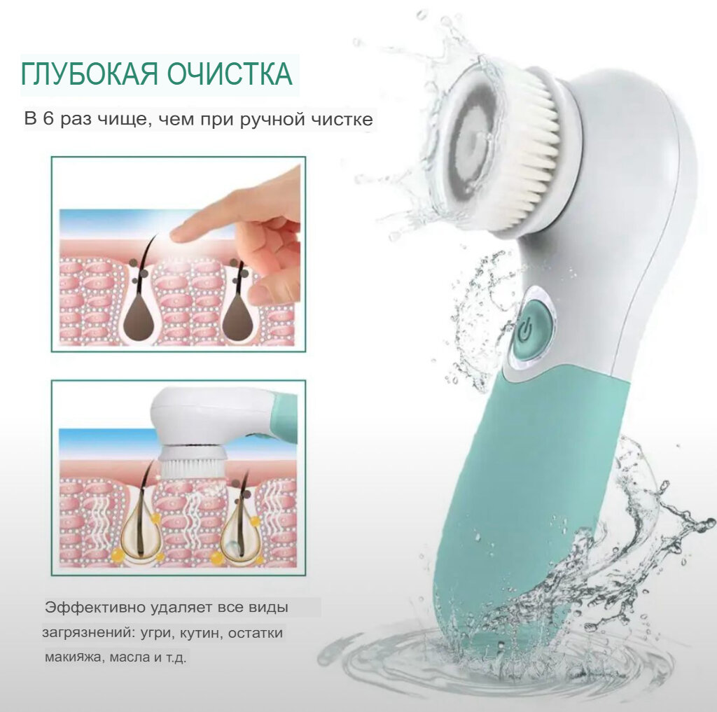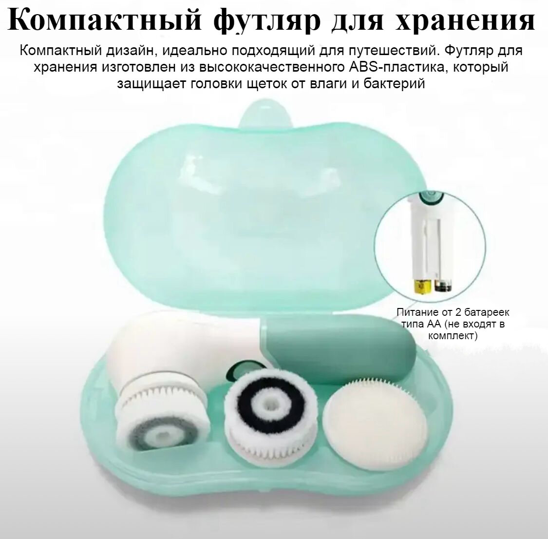 Купить Вращающаяся водонепроницаемая электрическая щетка для лица Queenwill с 3-мя сменными насадками для всех типов кожи
