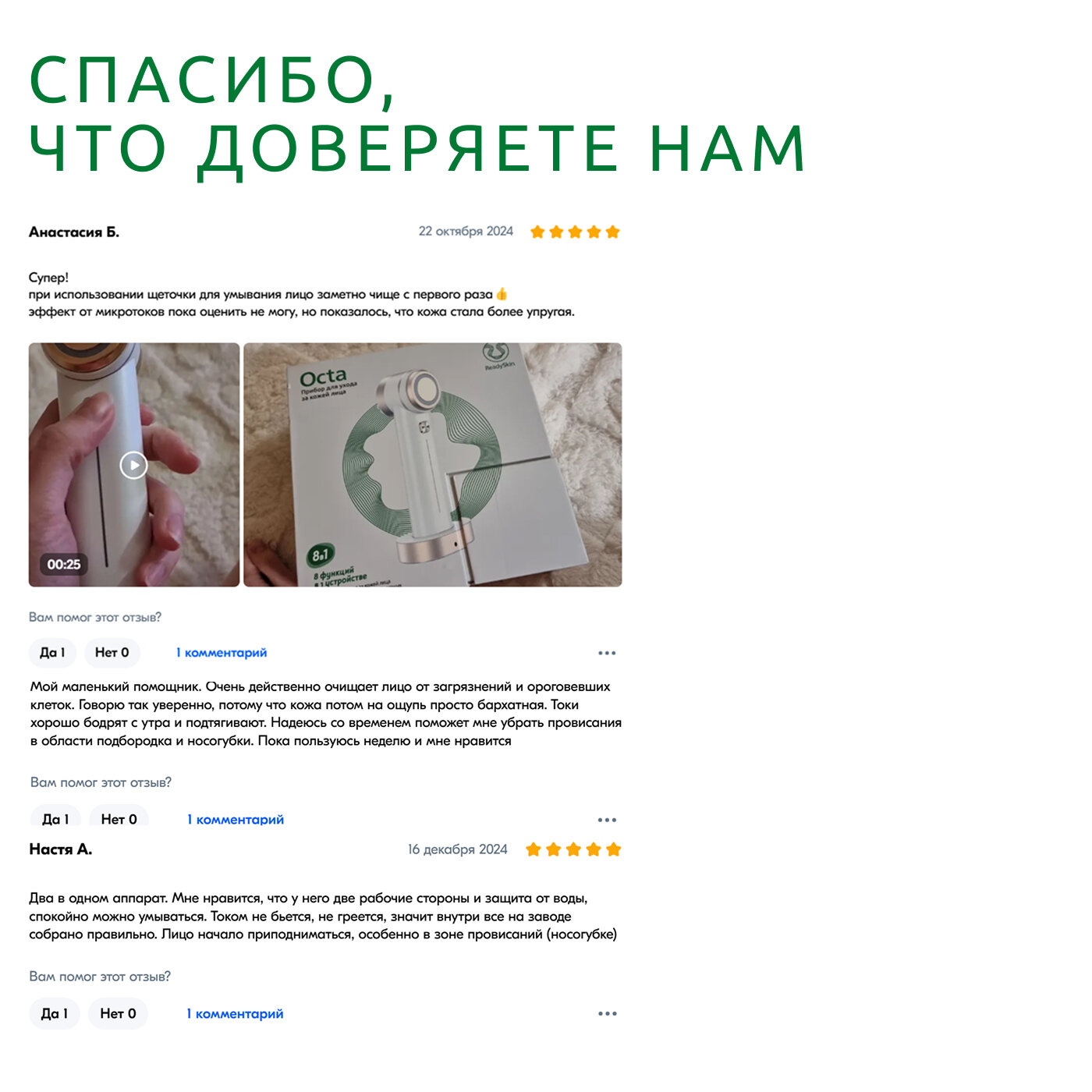 Ниже Вы можете прочитать отзывы на ReadySkin Octa Аппарат для омоложения, микротоки, LED терапия, косметологический массажер для ухода за кожей лица, шеи и декольте, комплексный уход, ознакомится с подробными характеристиками, посмотреть интересные обзоры и фотографии на ReadySkin Octa Аппарат для омоложения, микротоки, LED терапия, косметологический массажер для ухода за кожей лица, шеи и декольте, комплексный уход.