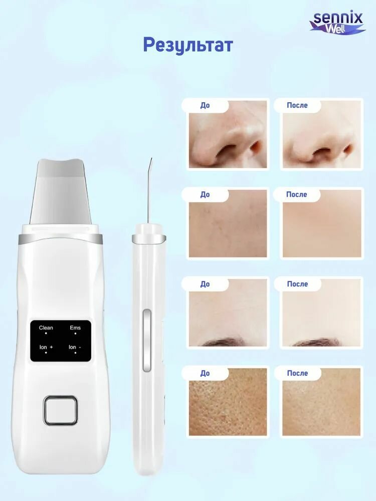 Sennix Аппарат для ультразвуковой чистки лица с 3 режимами работы интересное: