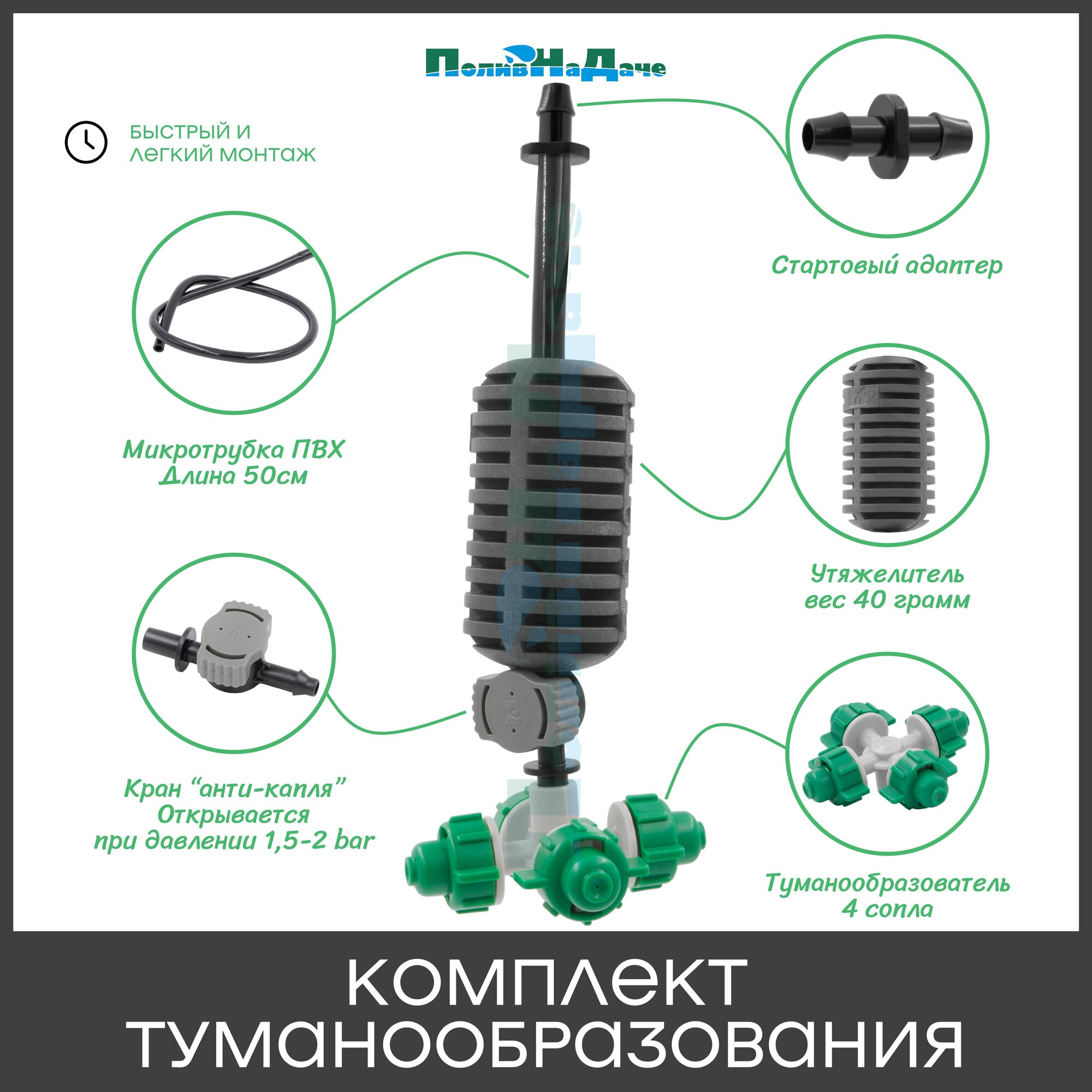 Туманообразователь для теплиц, фоггер, разбрызгиватель, дождеватель на 4 форсунки - 1 комплект