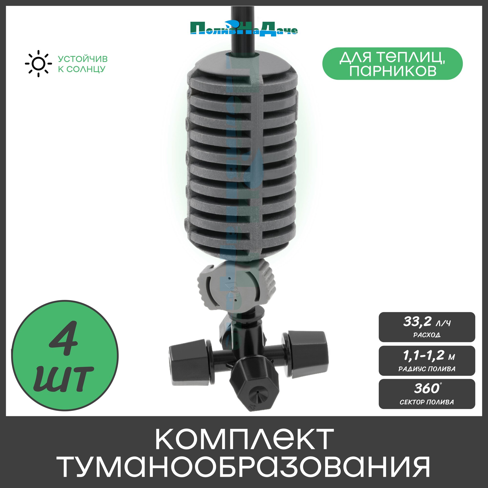 Туманообразователь для теплиц, фоггер, разбрызгиватель, дождеватель на 4 форсунки - 1 комплект