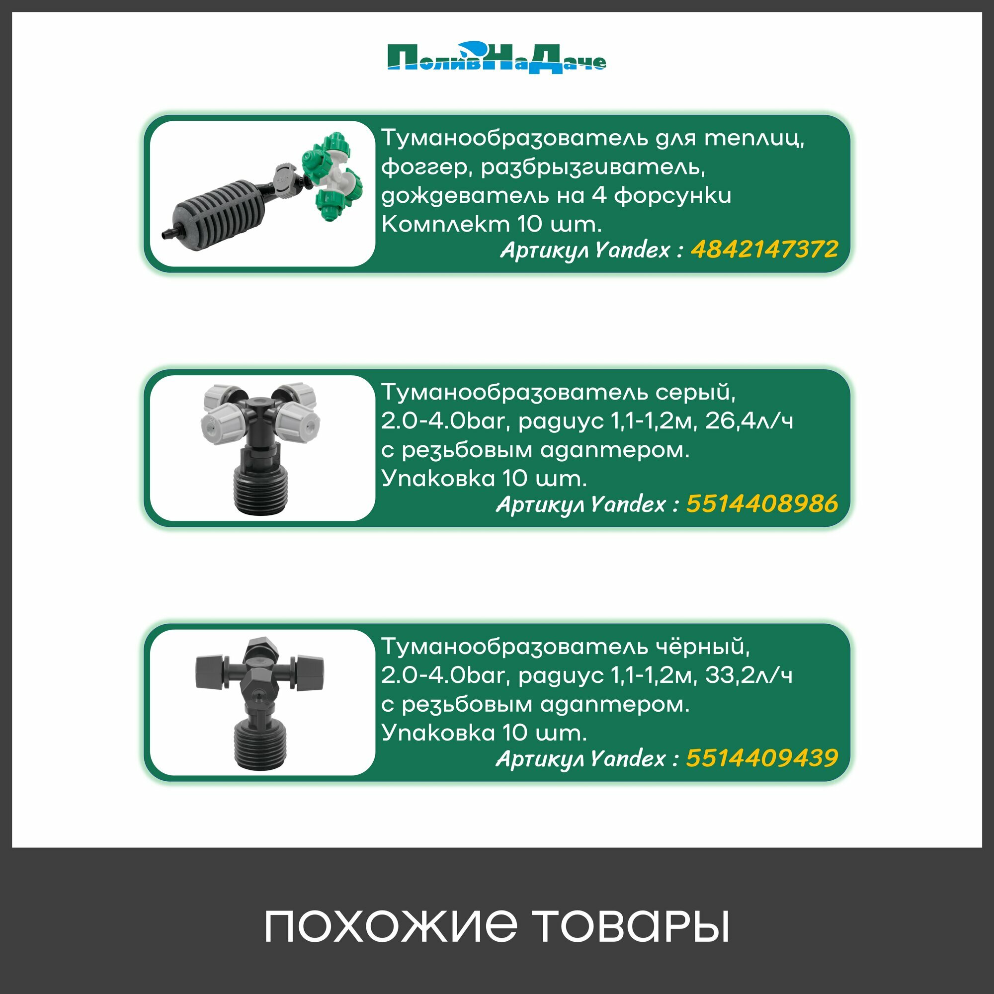 Туманообразователь для теплиц, фоггер, разбрызгиватель, дождеватель на 4 форсунки - 10 комплектов