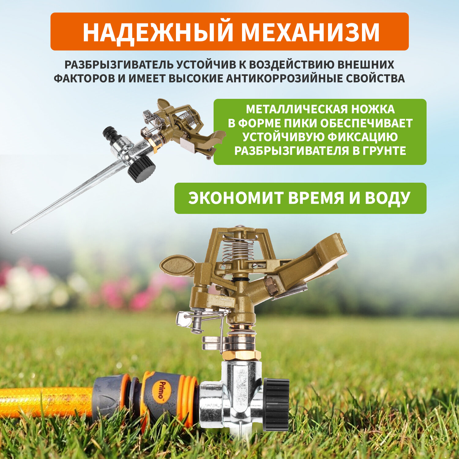 Разбрызгиватель латунный импульсный Четыре сезона / ороситель дачный / автополив садовый / дождеватель интересное: