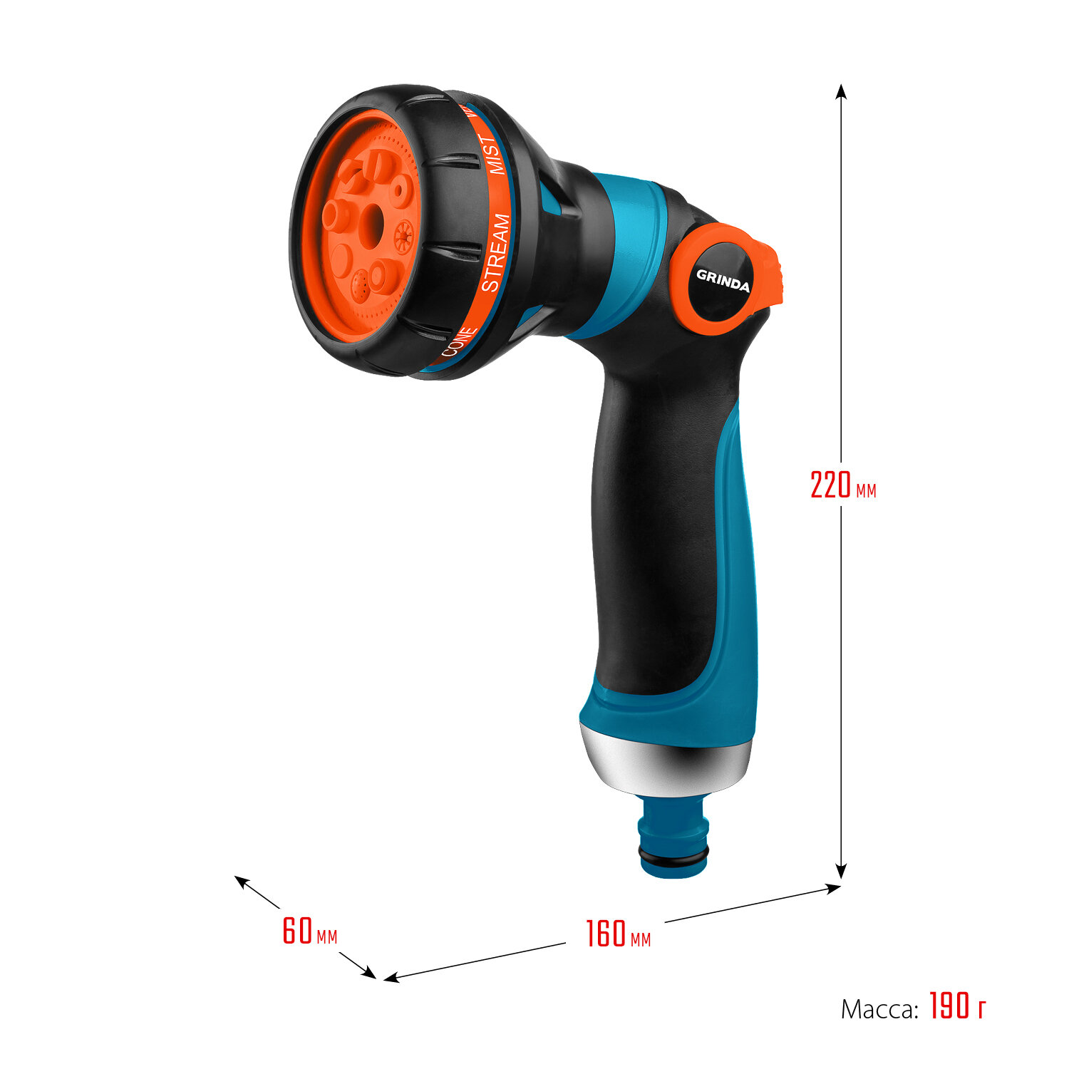 Поливочный пистолет с регулятором напора GRINDA 8 режимов 429100