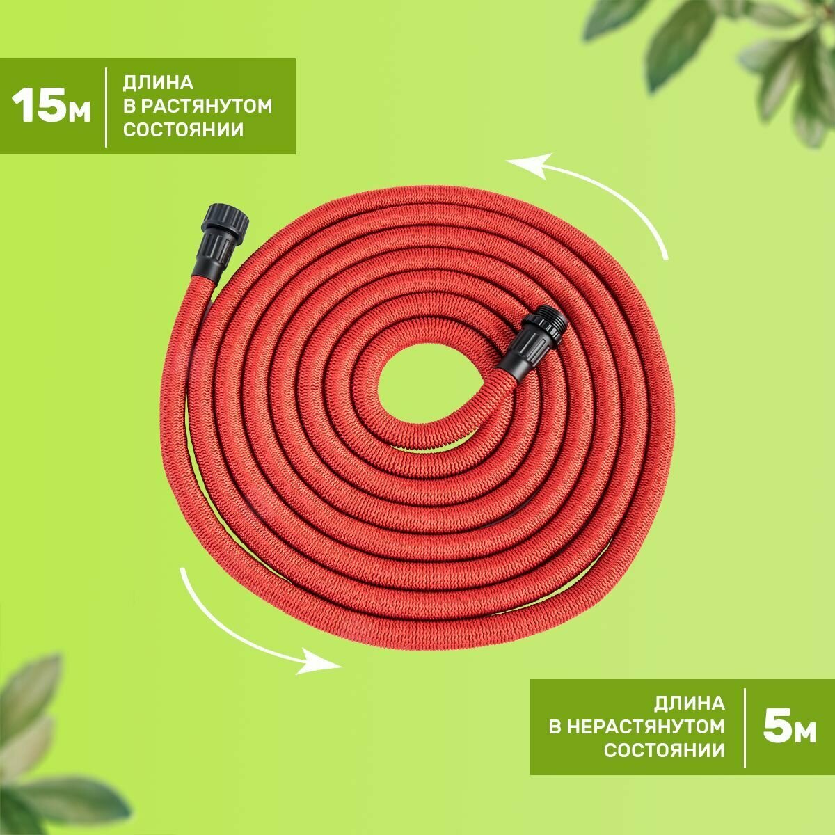 Садовый поливочный шланг растягивающийся/шланг для дачи/стрейч-шланг/2.5м-12м/латунные разъёмы/
