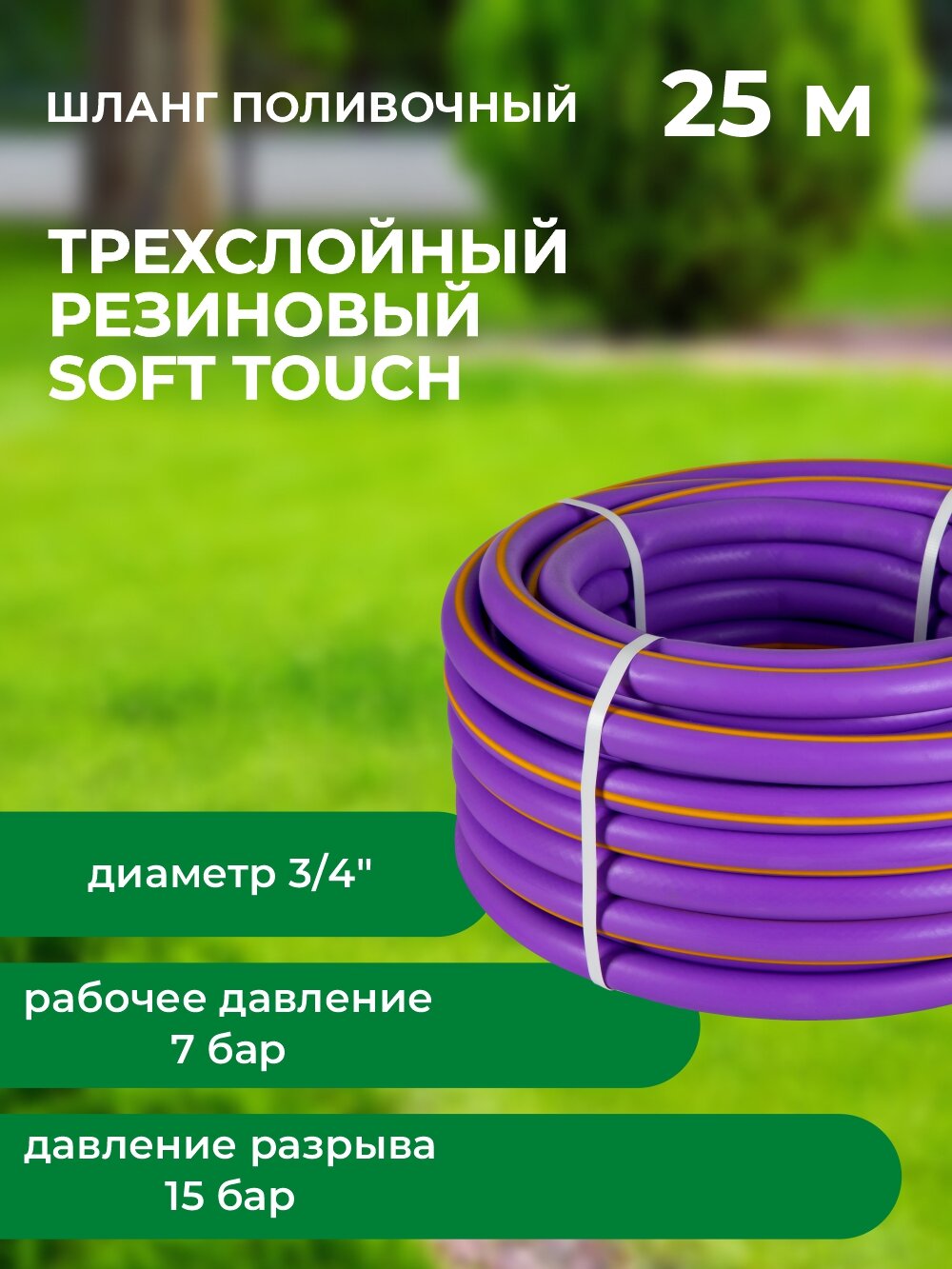 Шланг поливочный Резиновый (ТЭП) Soft Touch армированный, 3/4", 25 м, сиреневый, давление 7-15 бар. В придачу интересное: