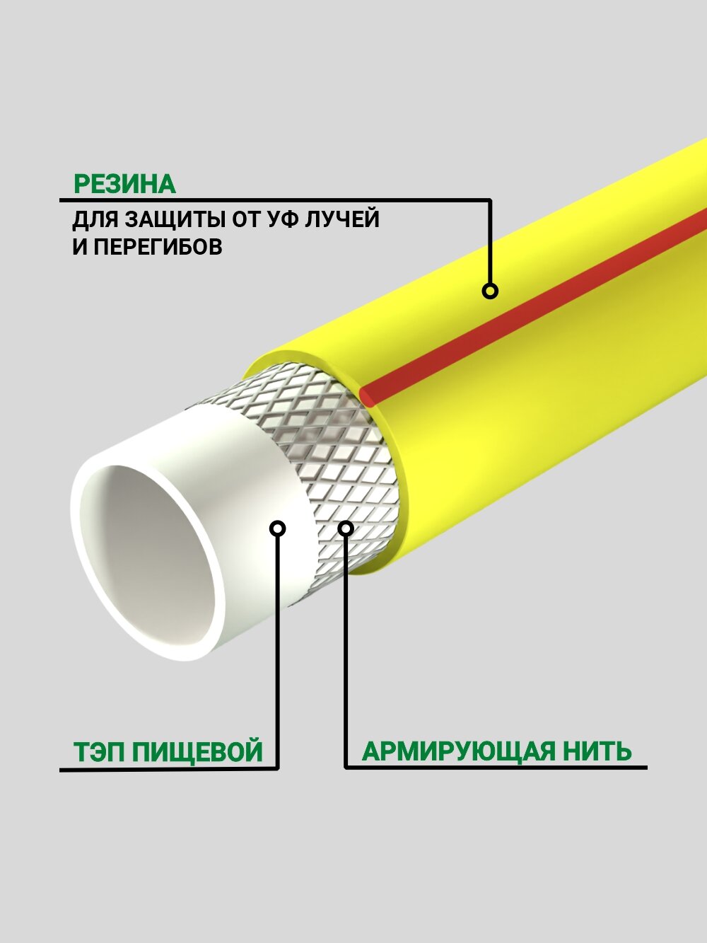 Шланг поливочный Резиновый (ТЭП) Soft Touch армированный, 1/2", 25 м, желтый, давление 7-15 бар. В придачу интересное: