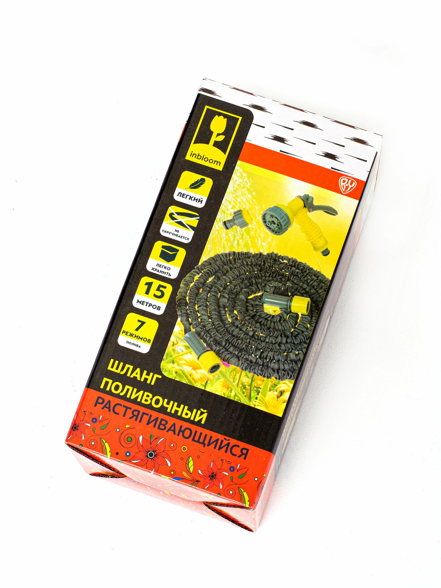 Шланг полив. растягивающийся 15м ткан. оплетка с пистол.-разбрыз и коннектором 1/2 INBLOOM BY интересное: