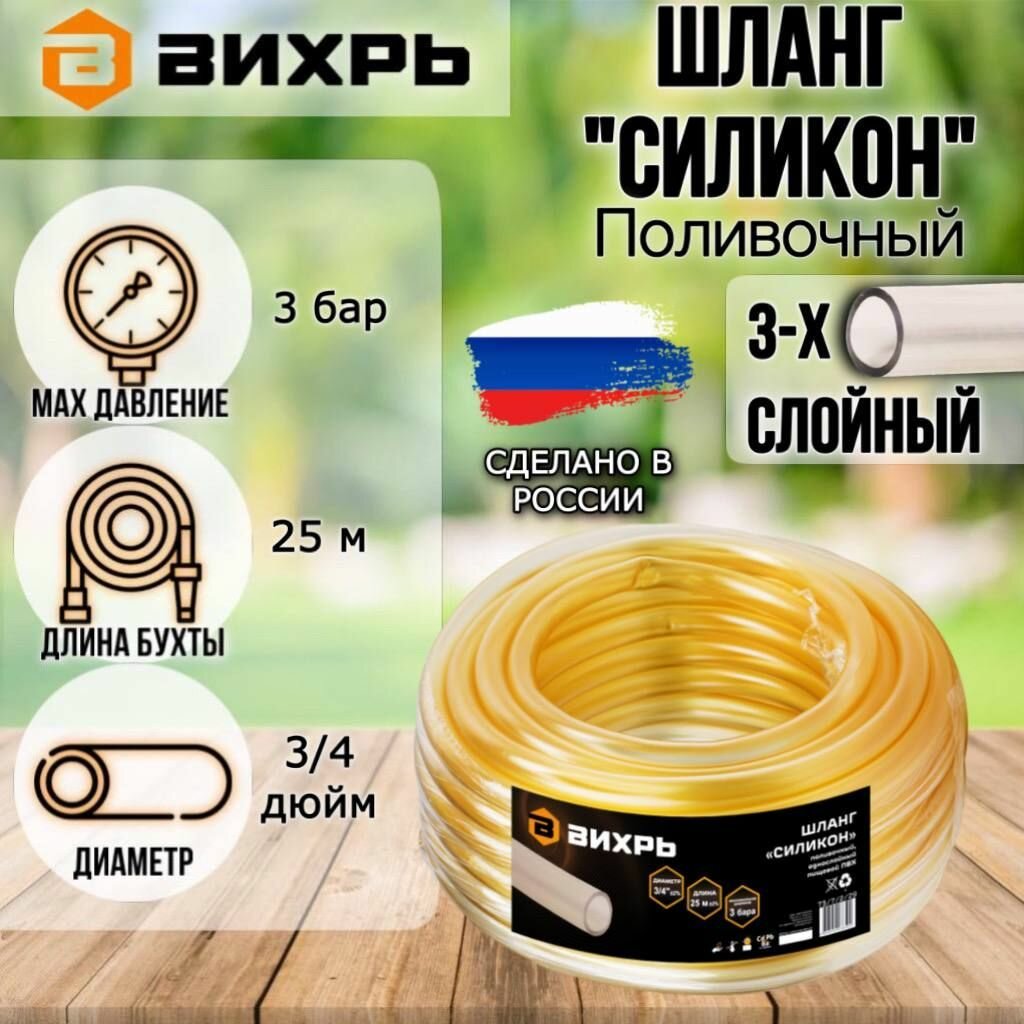 Шланг поливочный 25 м "Силикон" однослойный 3/4" (прозрачный) Вихрь интересное: