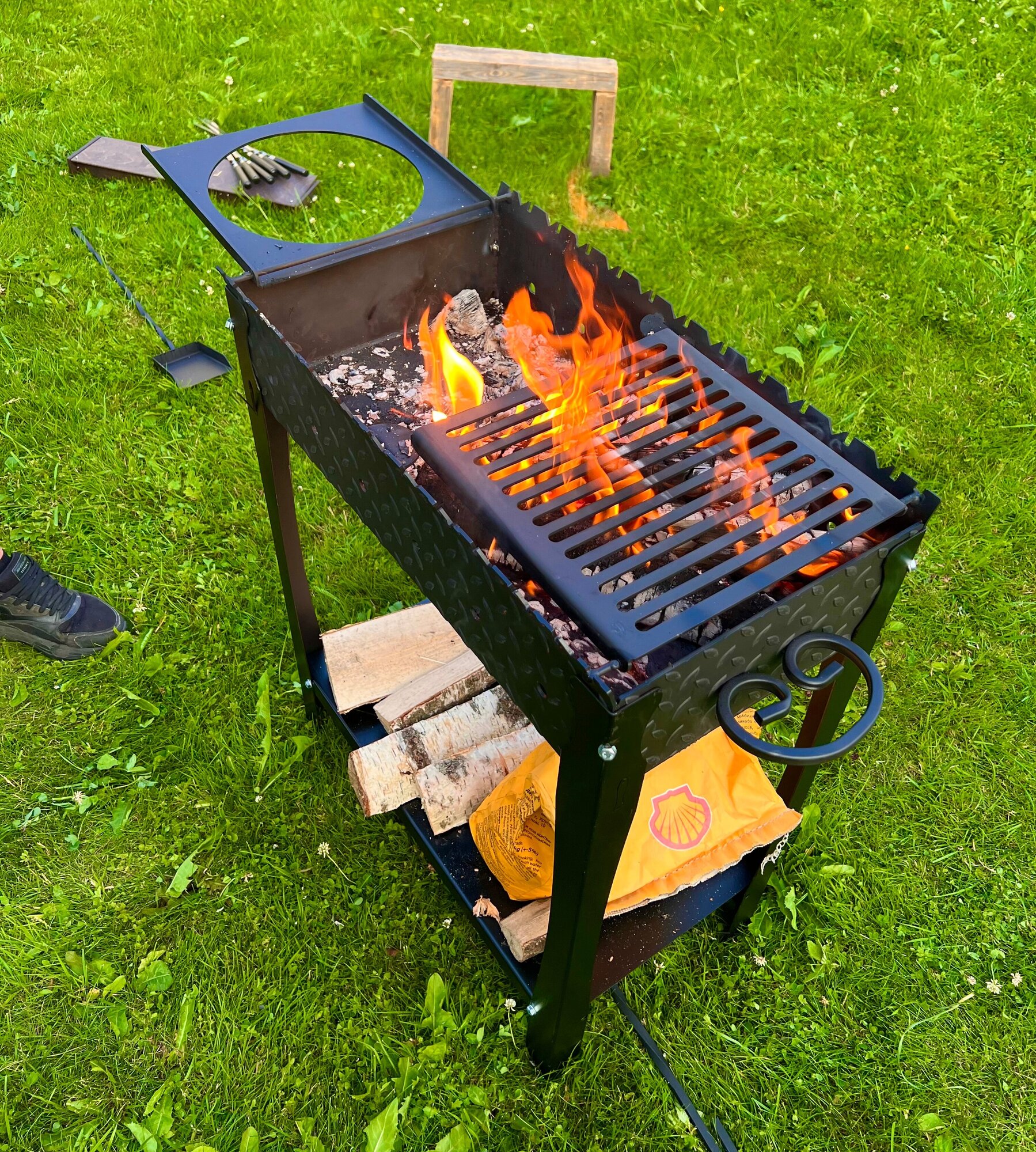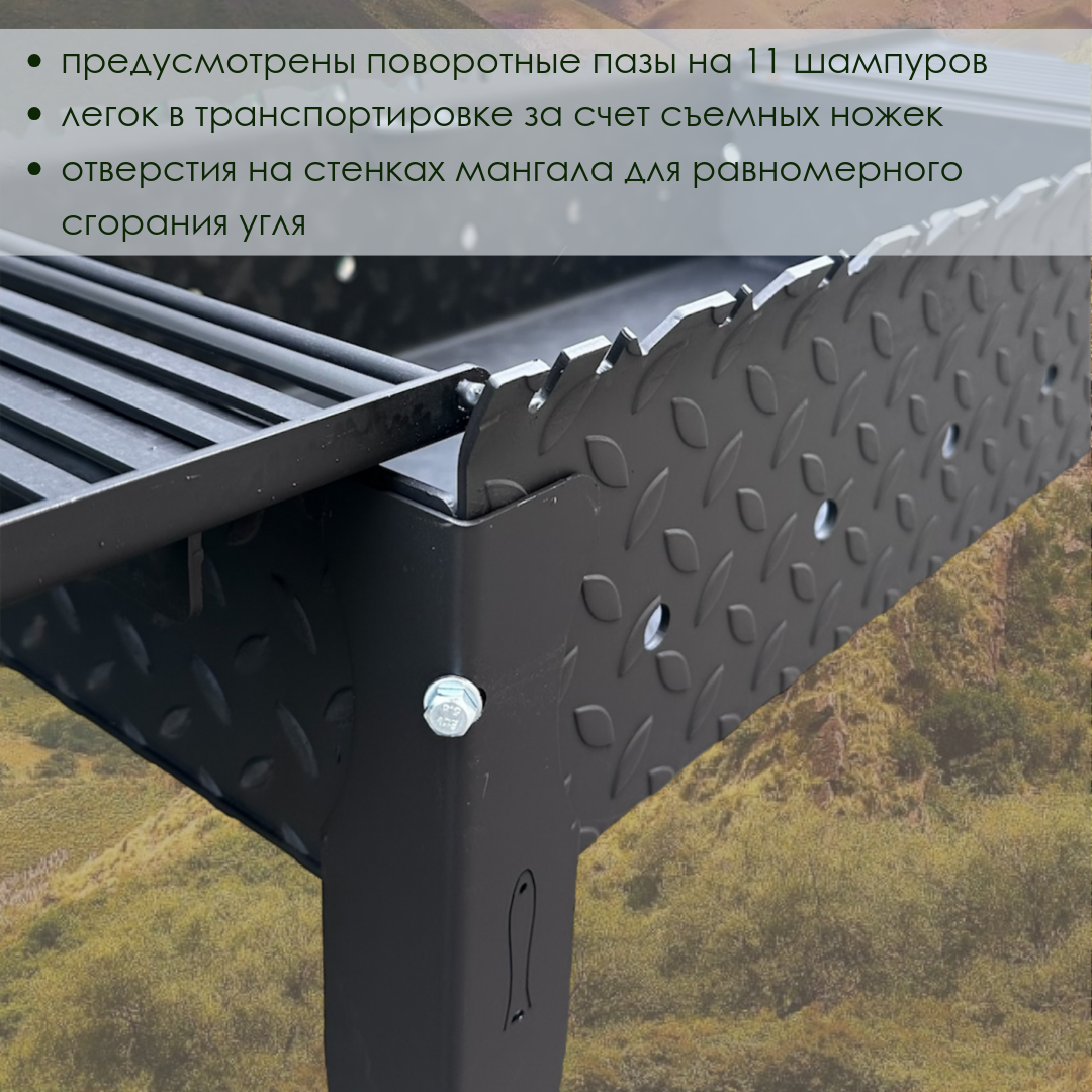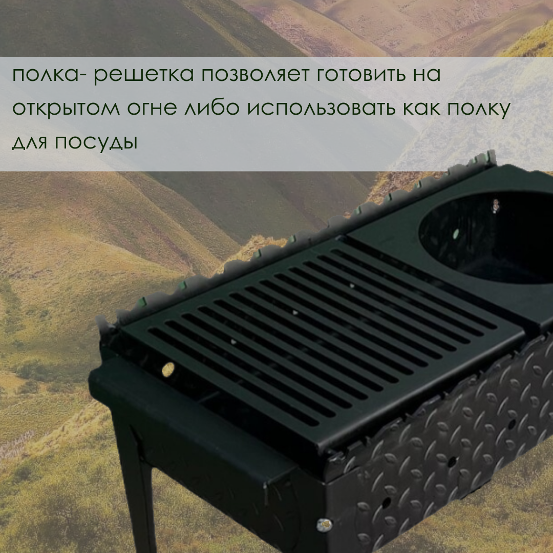 Мангал 600 мм с полкой-решёткой, полкой под казан и полкой под дрова сталь 3 мм разборный интересное: