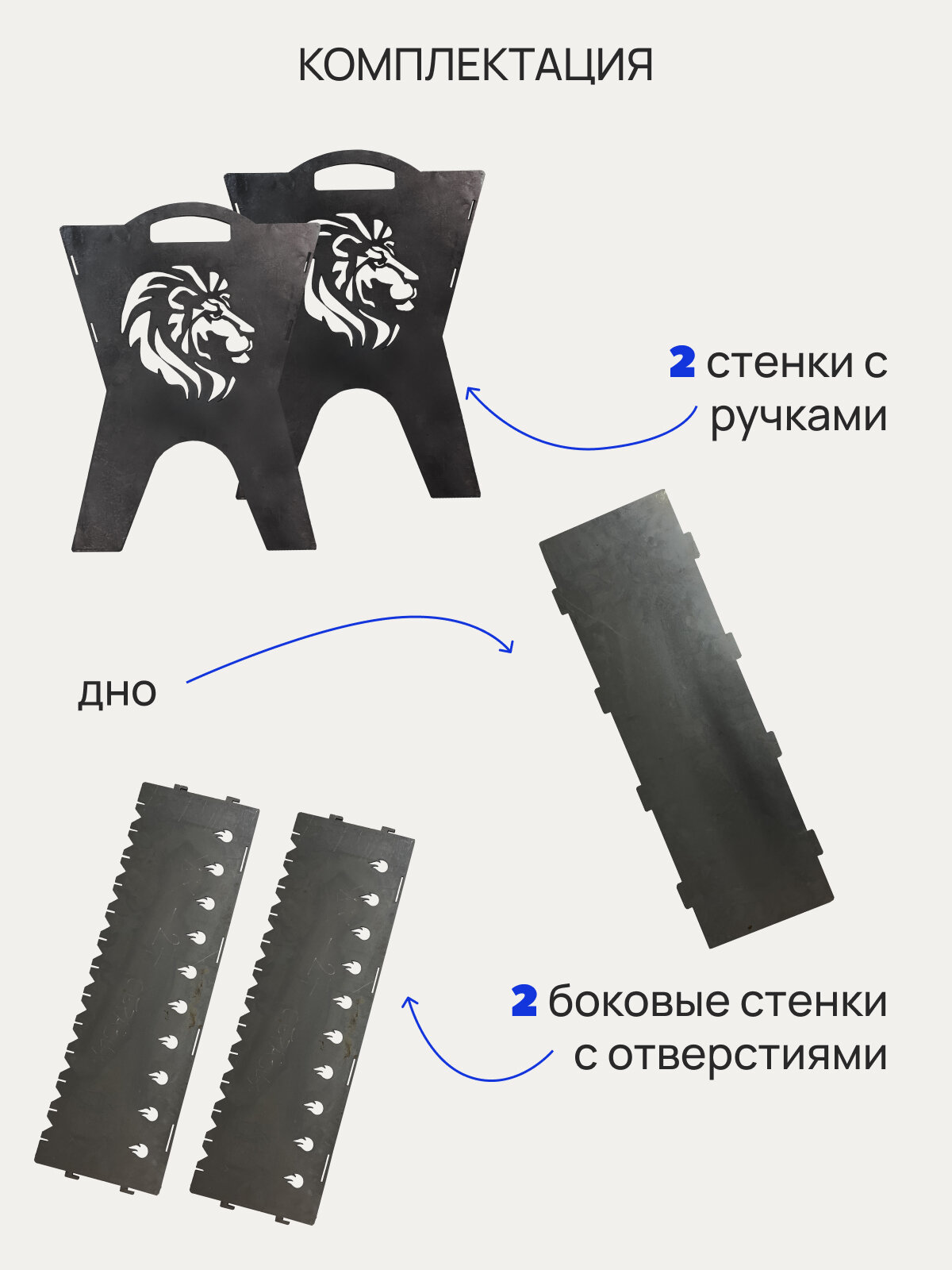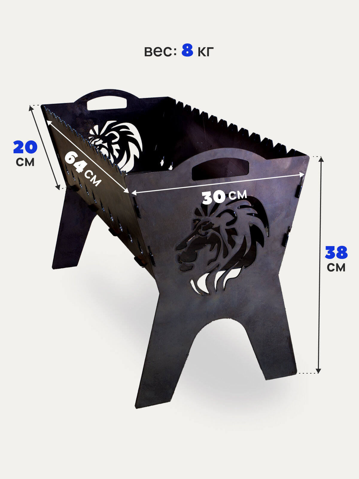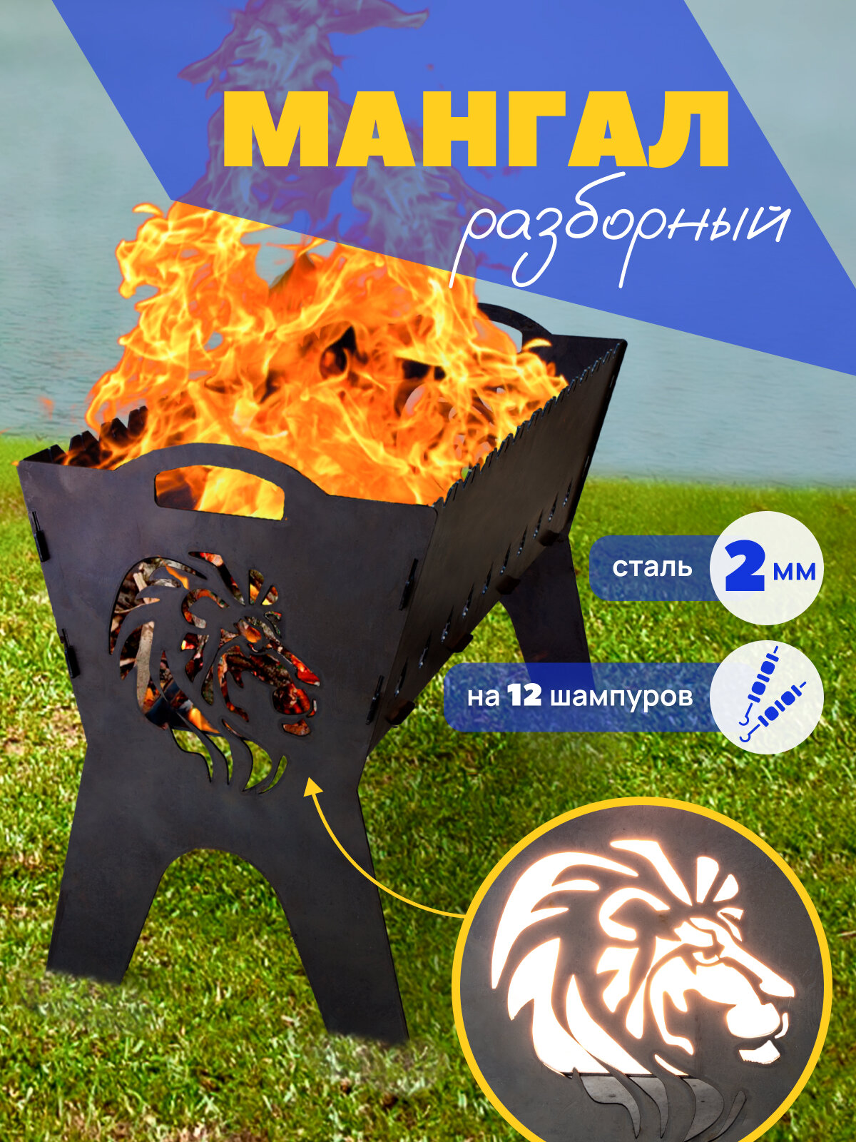 Мангал разборный складной туристический 2 мм с головой льва интересное: