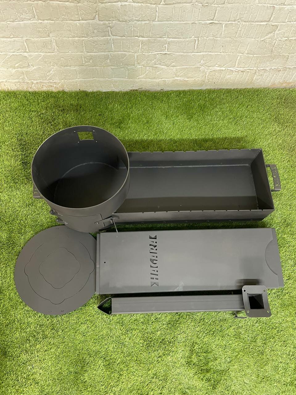 Мангал с печью под казан 12 литров HAGARA "Дачный", разборный, с дровницей, полками и ручкой