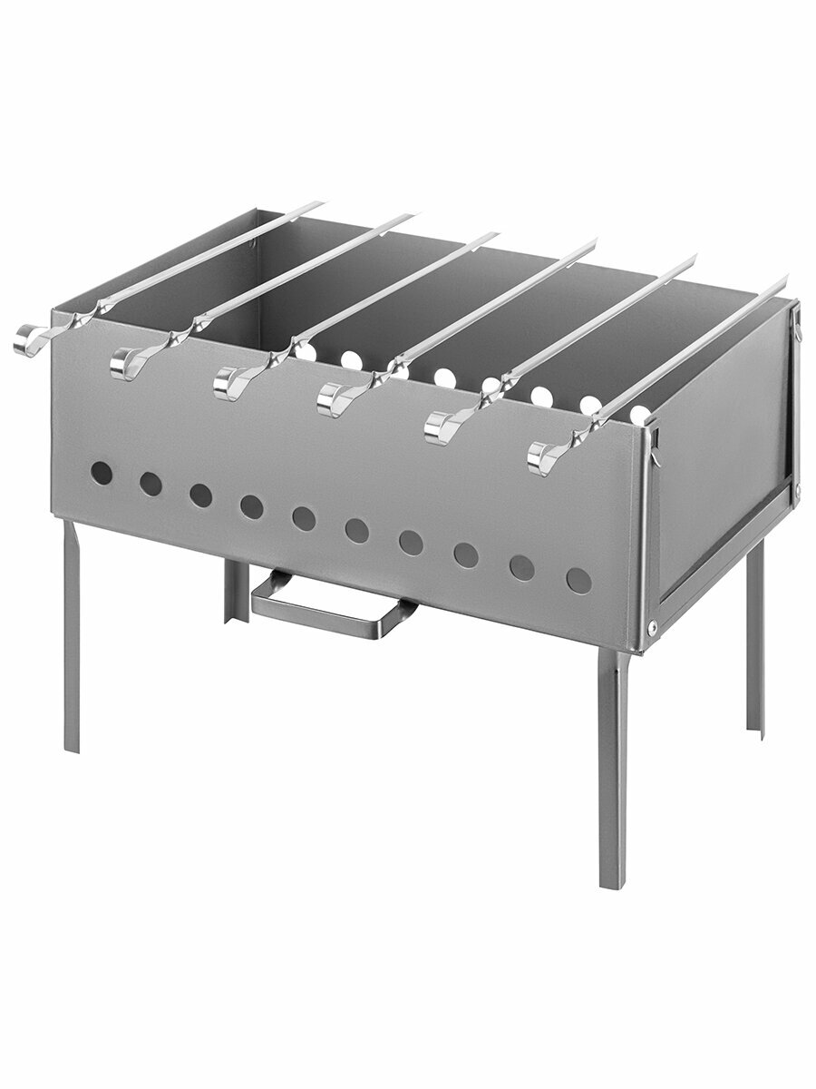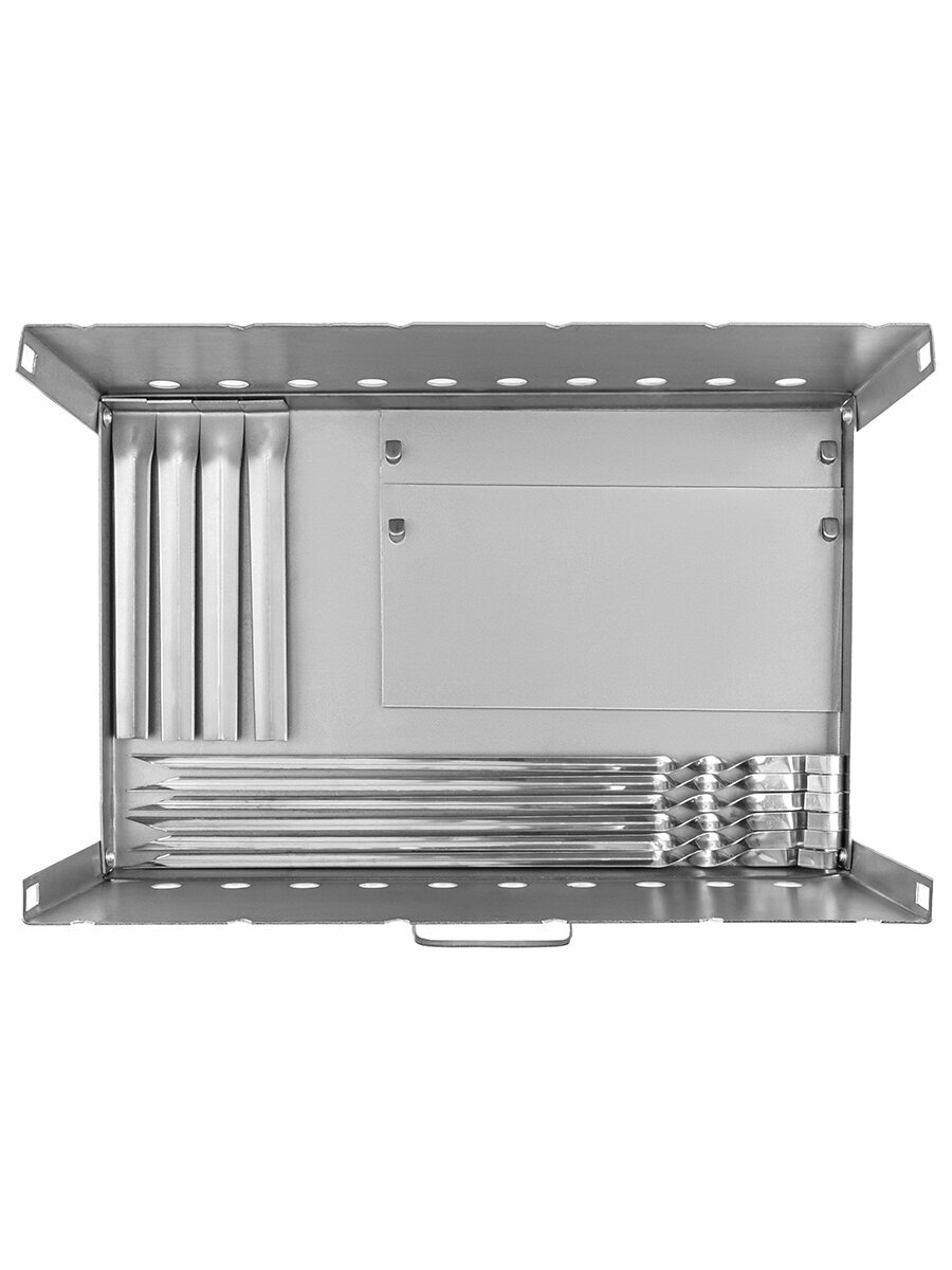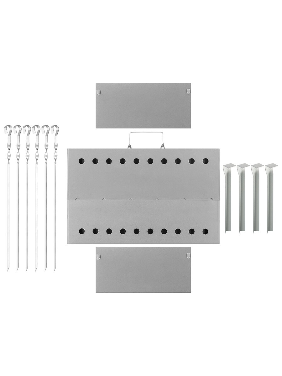 | Дополнительная информация | Мангал-дипломат 40*30*32 см, с сумкой 52*4*37,5 см (ткань Оксфорд 600 D), размер мангала в сложенном виде 40*30*3 см, размер без ножек 40*30*14,5 см, размер мангала в собранном виде без учета ручки 40*26*14,5 см, толщина металла 1,5 мм, в комплекте 6 шампуров 39*2*1 см толщиной 1 мм, в комплекте 4 ножки |