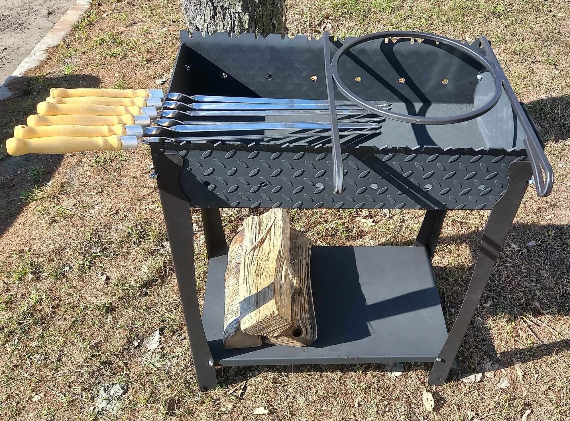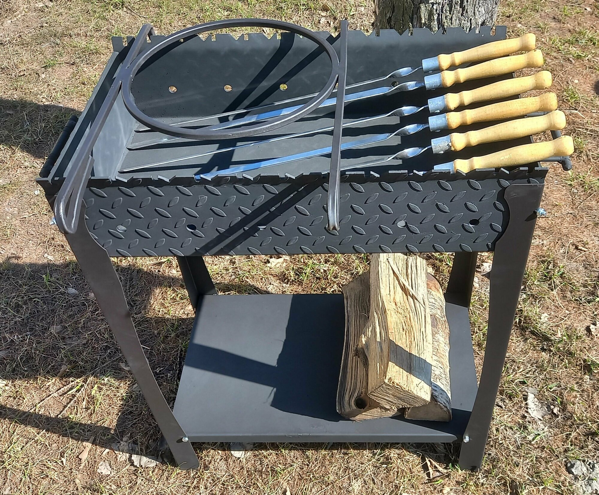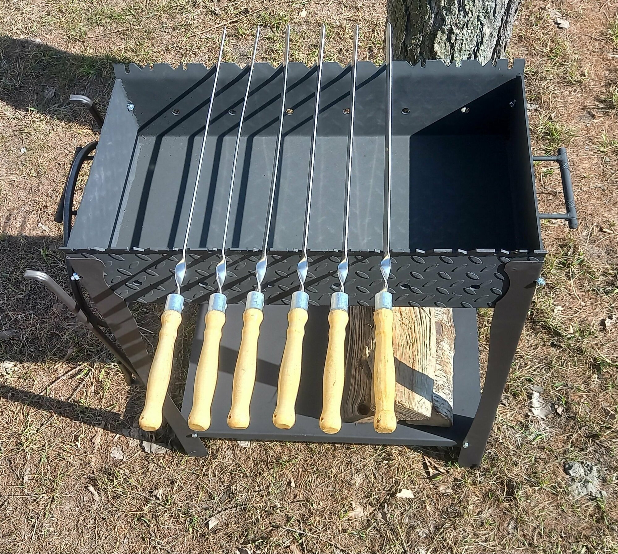 Комплект мангал разборный 600 мм с полкой для дров, 6 шампуров, подказанник интересное: