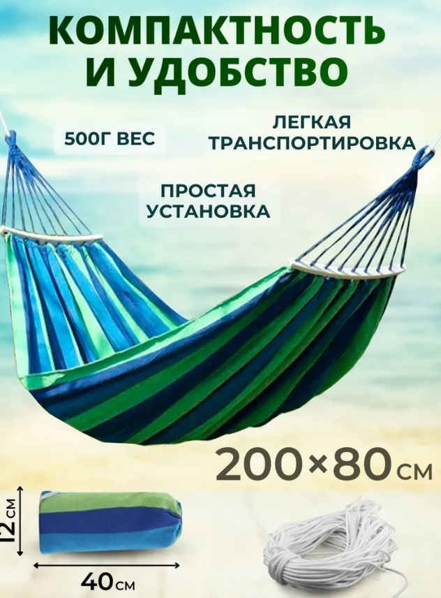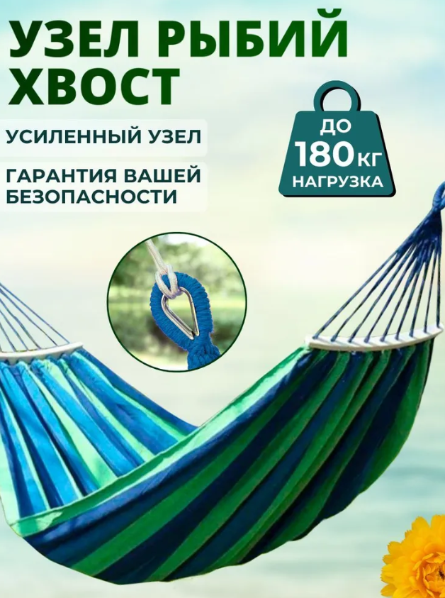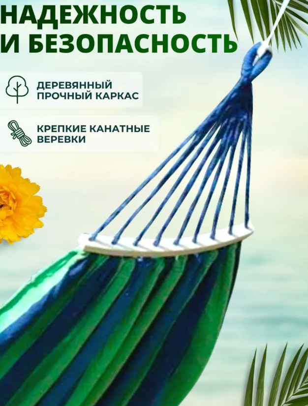 Гамак синий подвесной с перекладиной из дерева\хлопок 200х80 см. интересное: