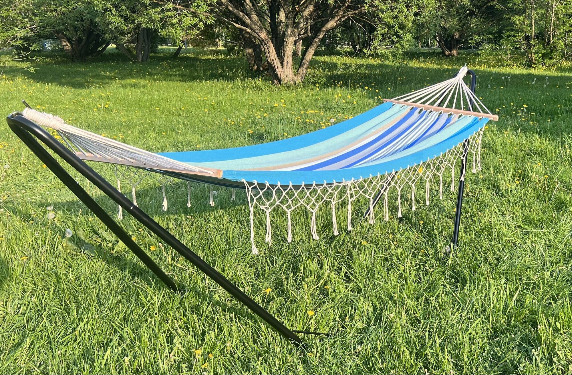 Гамак одноместный 200х100/280см с бахромой, хлопок, синий в полоску, нагрузка 100кг интересное: