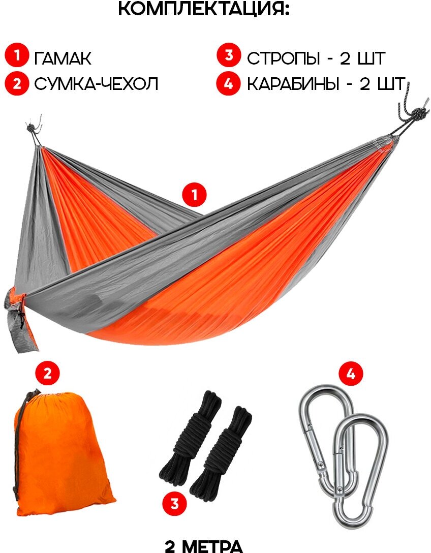 Гамак Вся-Чина, нейлон (Оранжевый-Серый) 270 х 140 см интересное: