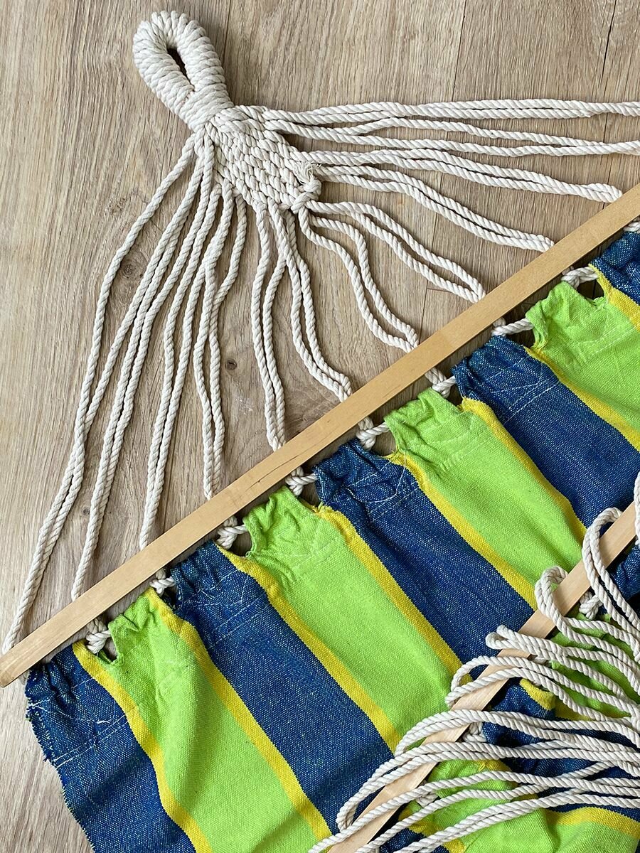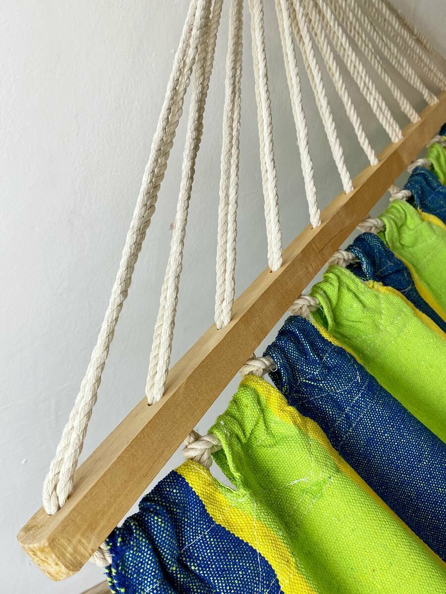 Гамак подвесной для дома и дачи гелеос ГП201020, размер 200х100см, с деревянной планкой, хлопок, зеленый лайм и синий интересное: