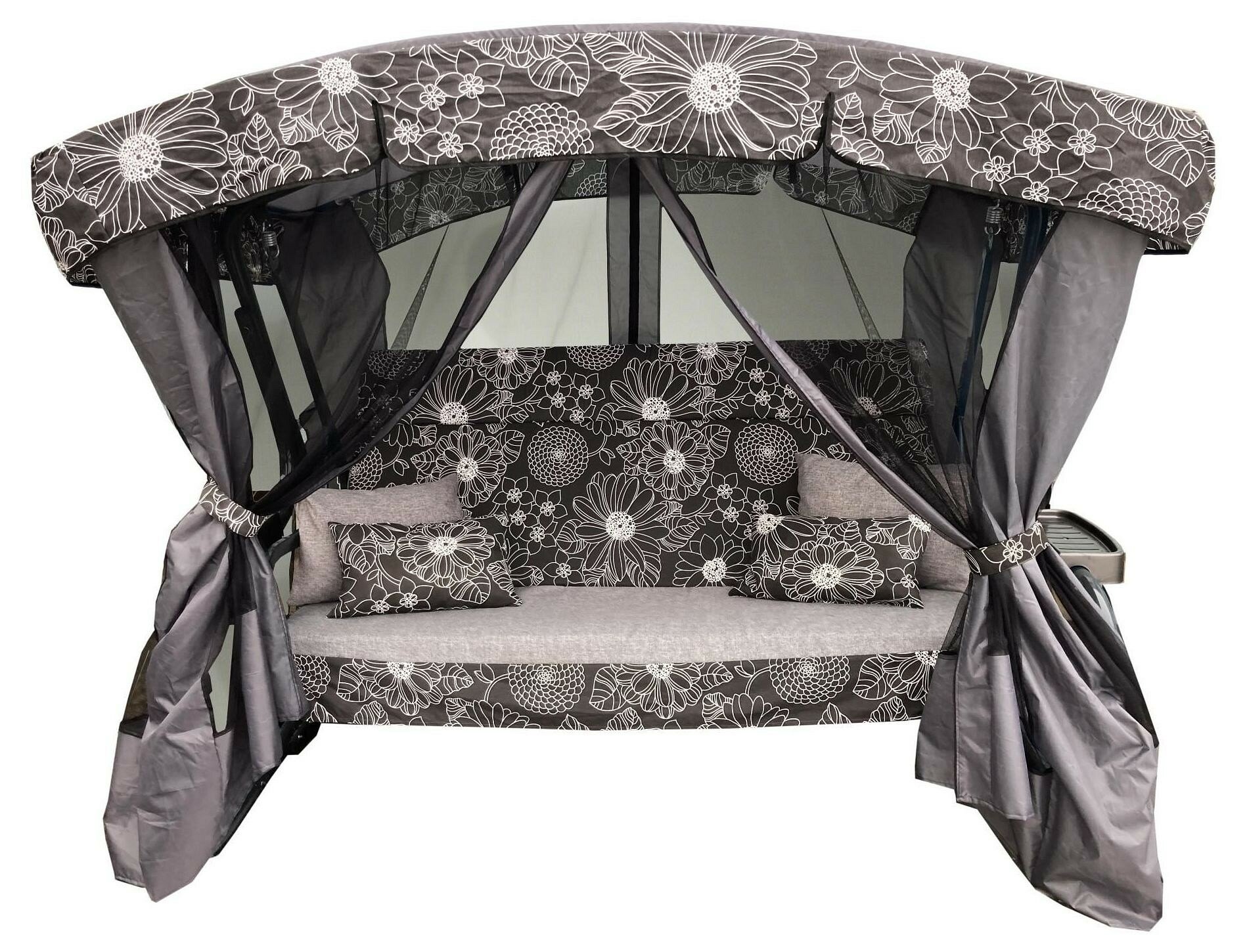 Качели садовые 3-х местные Мебельторг Ранго Премиум Флора Каркас графит/Черный рис.белые цветы