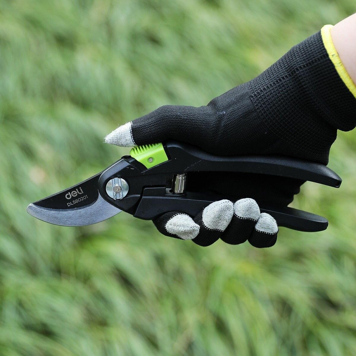 Секатор садовый Deli DL580201 лезвия с тефлоновым покрытием, длина 200мм, макс. диаметр резки 15мм, нержавеющая сталь интересное:
