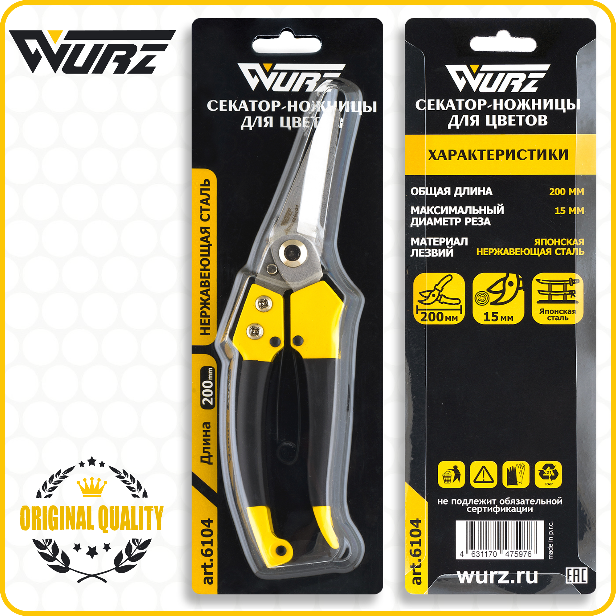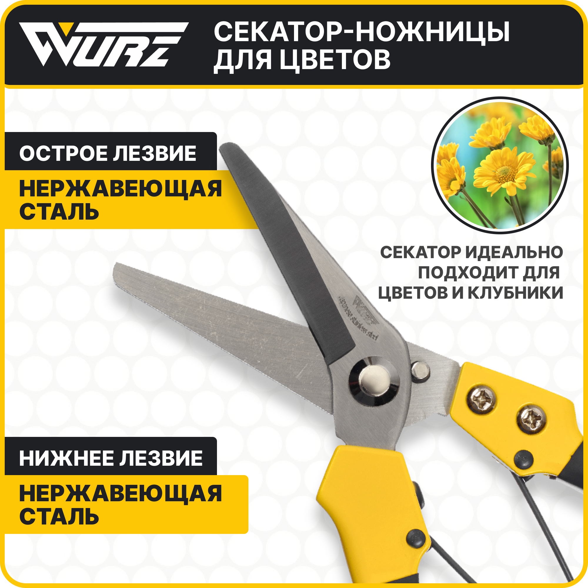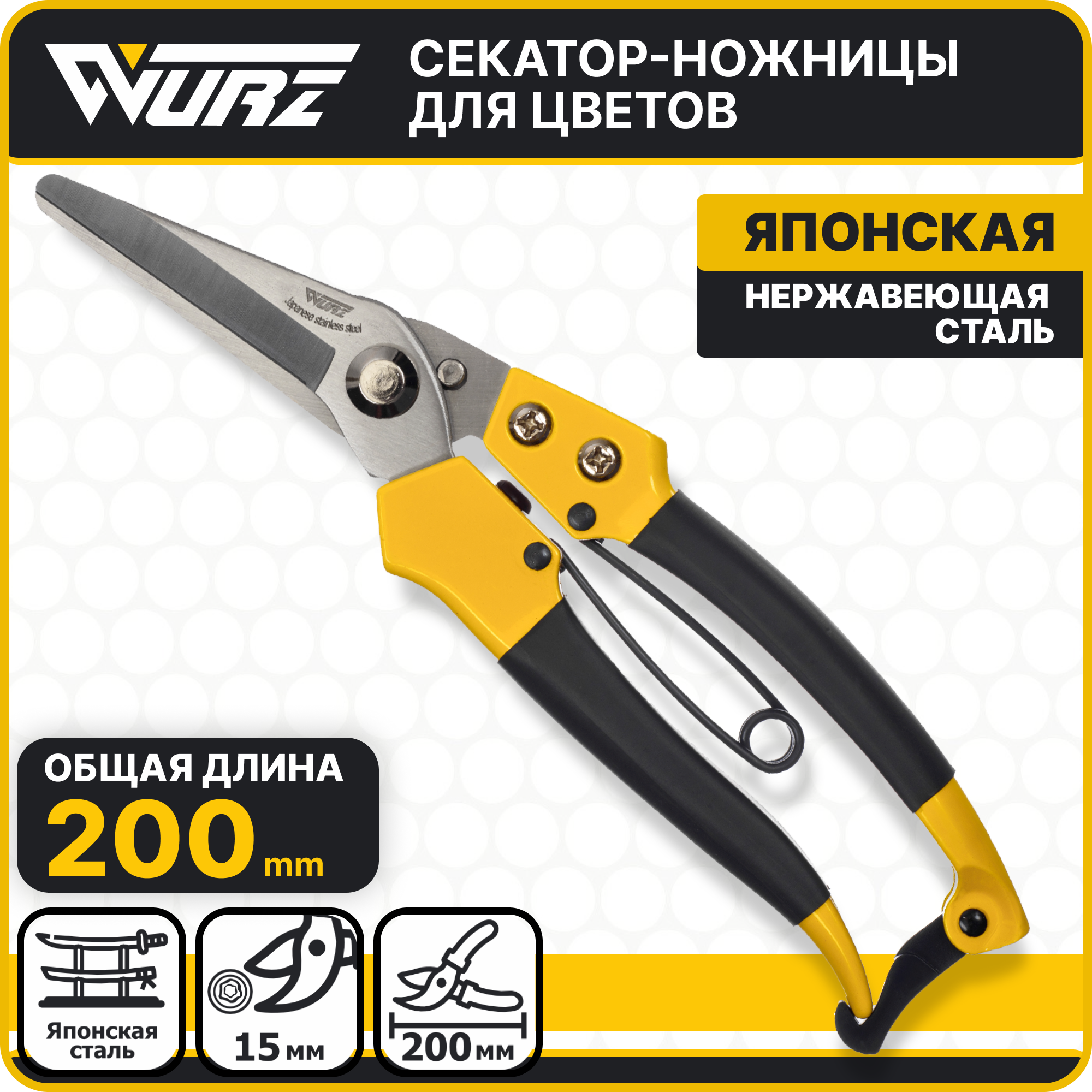 Купить Секатор садовый, ножницы садовые, срез до 15мм, для клубники, для кустов, для цветов 200мм Wurz 6104