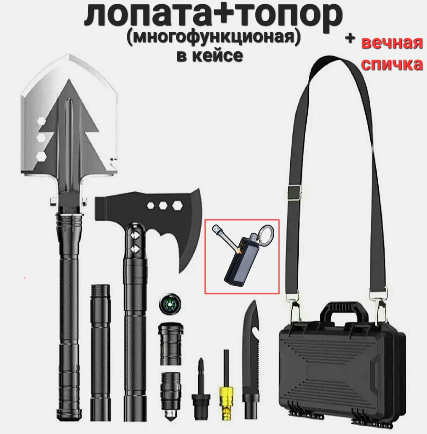 Многофункциональная лопата и топор в кейсе туристический универсальный набор для путешествий и в машину интересное: