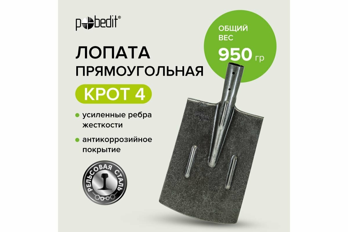 Pobedit Лопата прямоугольная рельсовая сталь крот 4 8025109