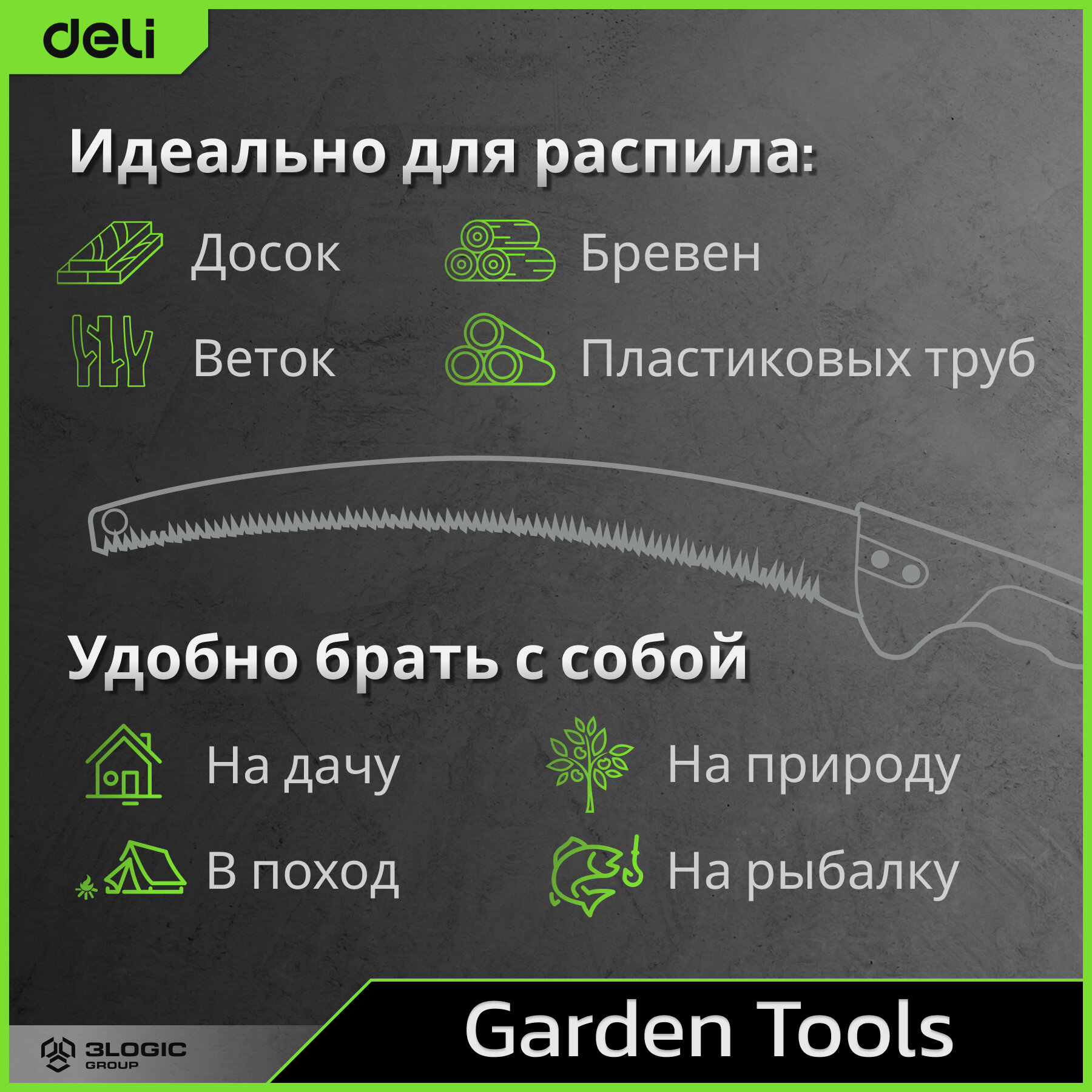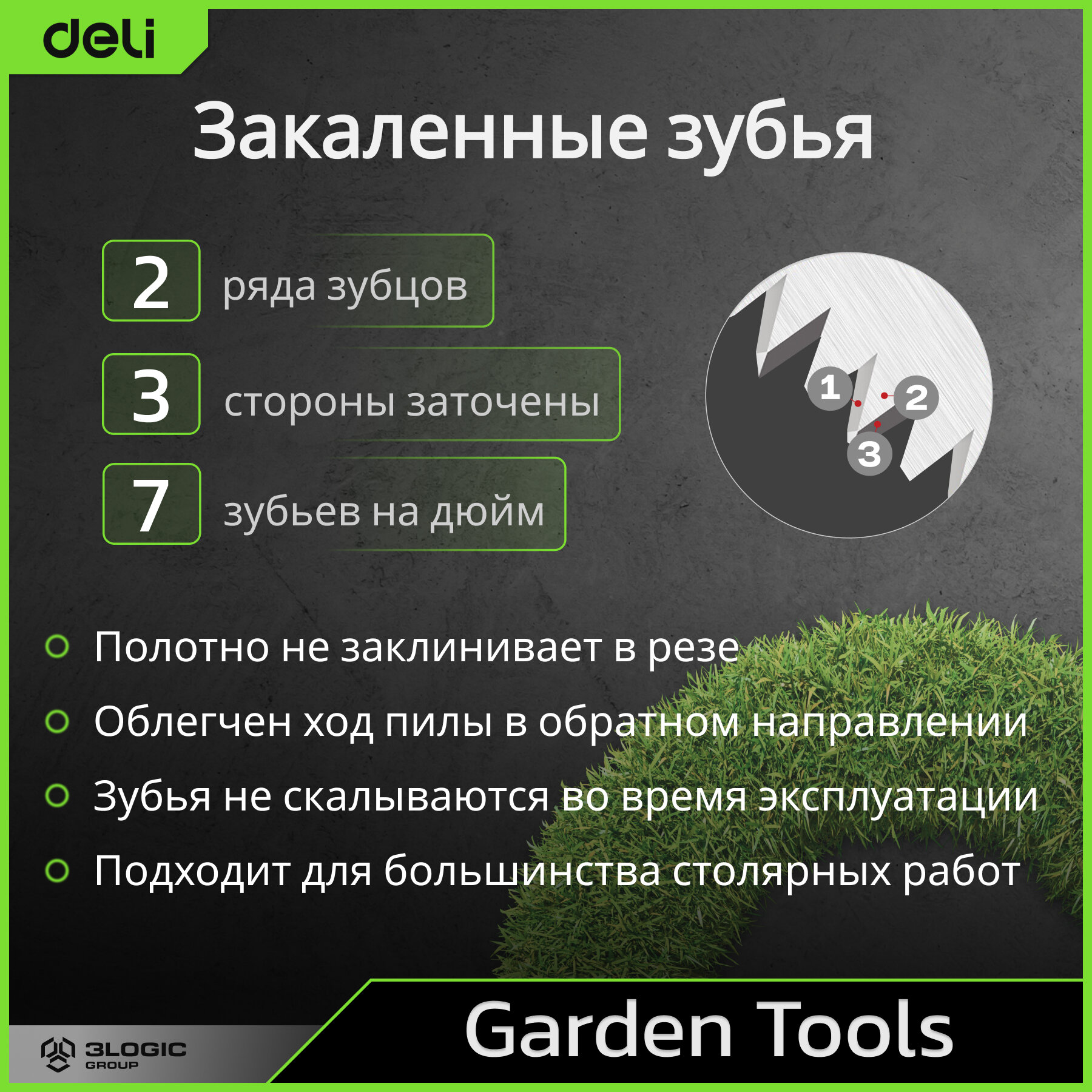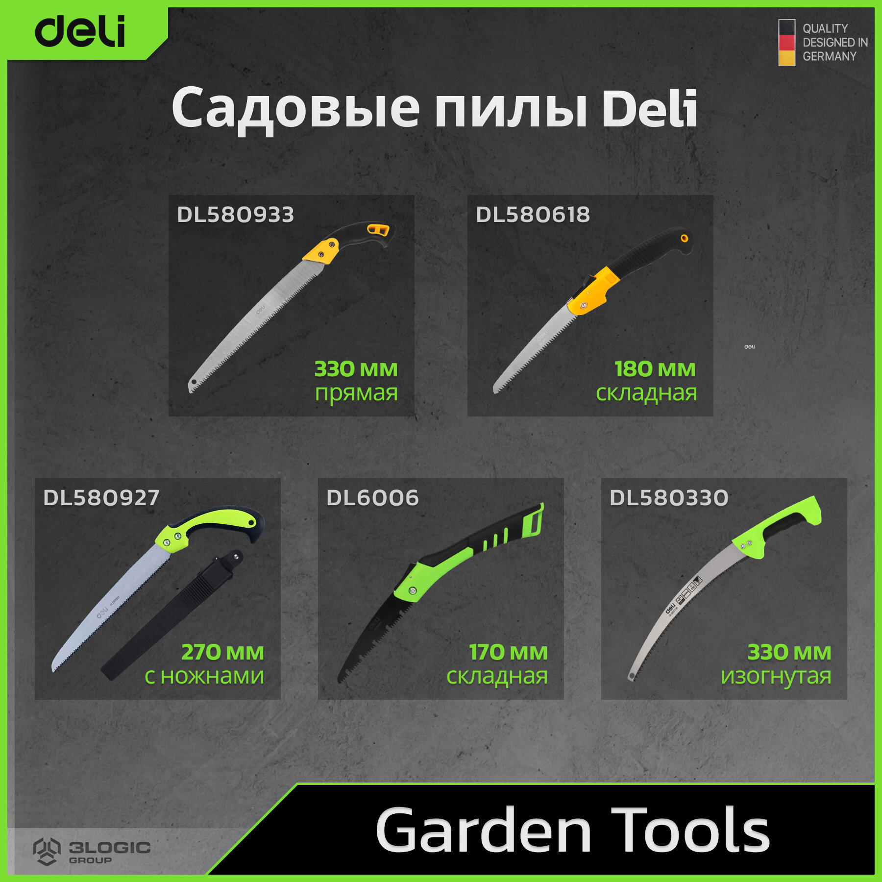 Садовая пила с изогнутым полотном Deli DL580330 (330мм, сталь 65MN, шаг зубьев 7 TPI, обрезиненная ручка) интересное: