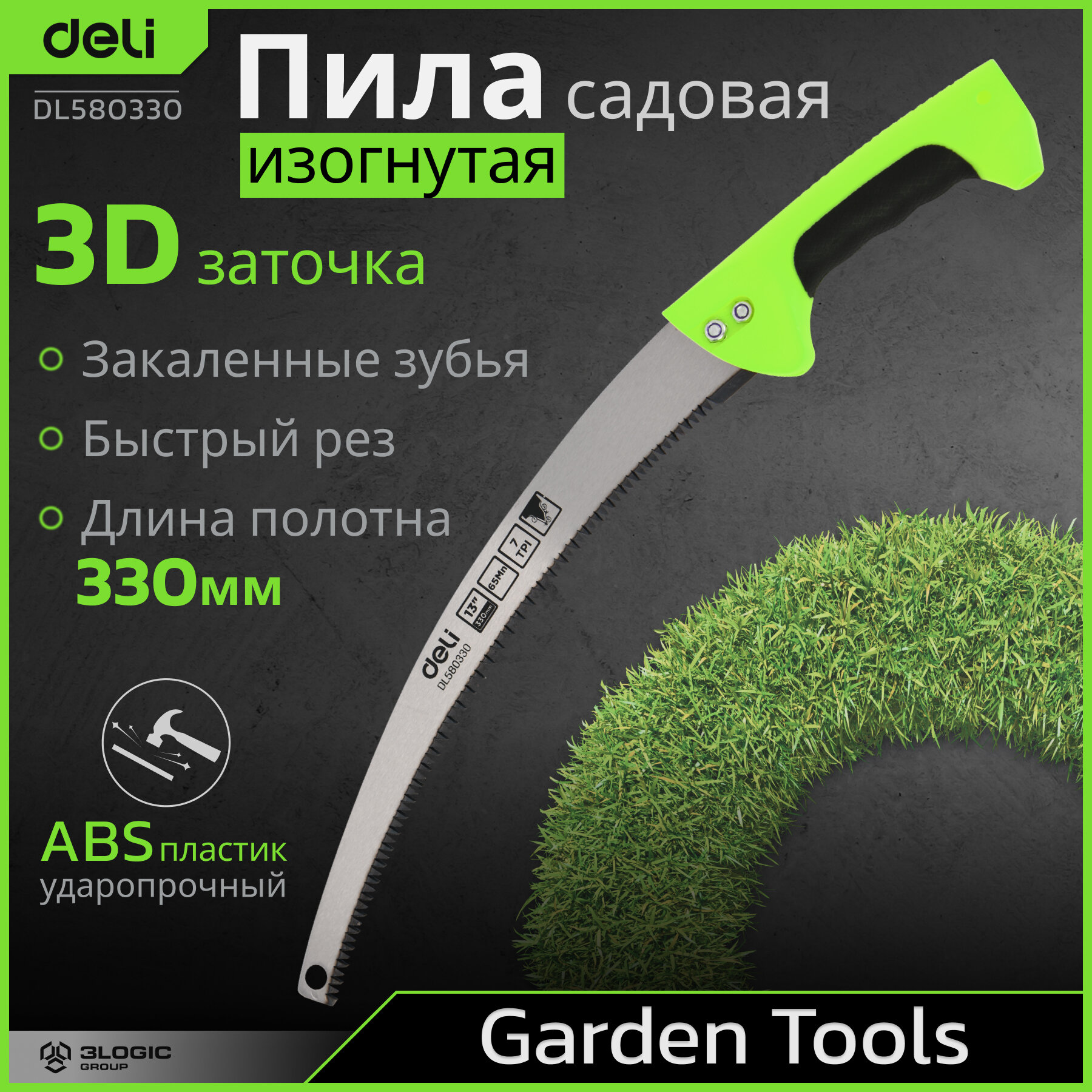 DELI Садовая пила с изогнутым полотном DL580330 (330мм сталь 65MN шаг зубьев 7 TPI обрезиненная ручка) 146649