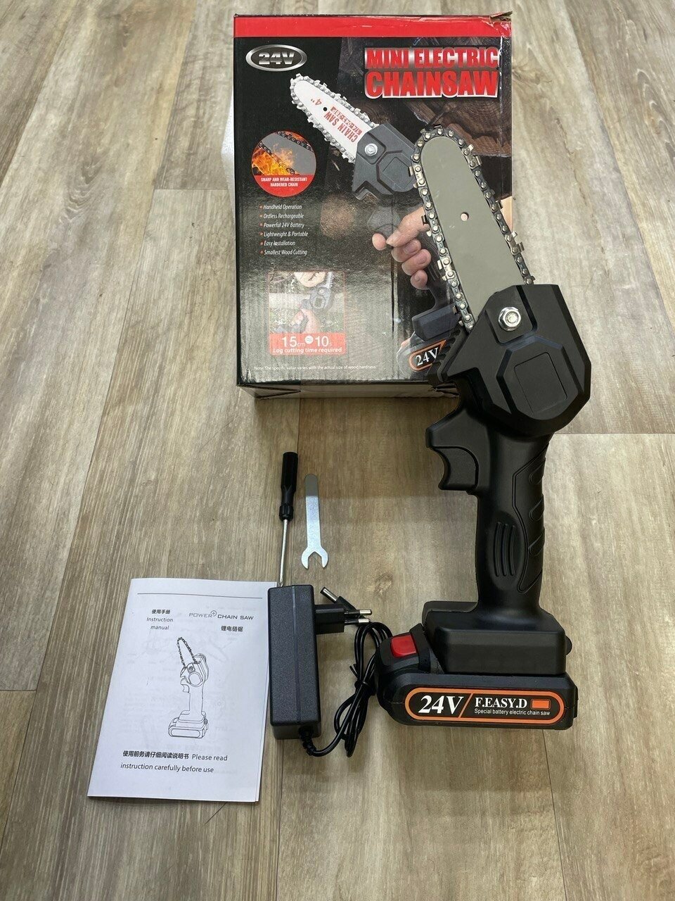 Купить Цепная мини пила аккумуляторная кусторез. 24v. Веткорез аккумуляторный. Легкая обрезка сучков и веток. Пила Садовая