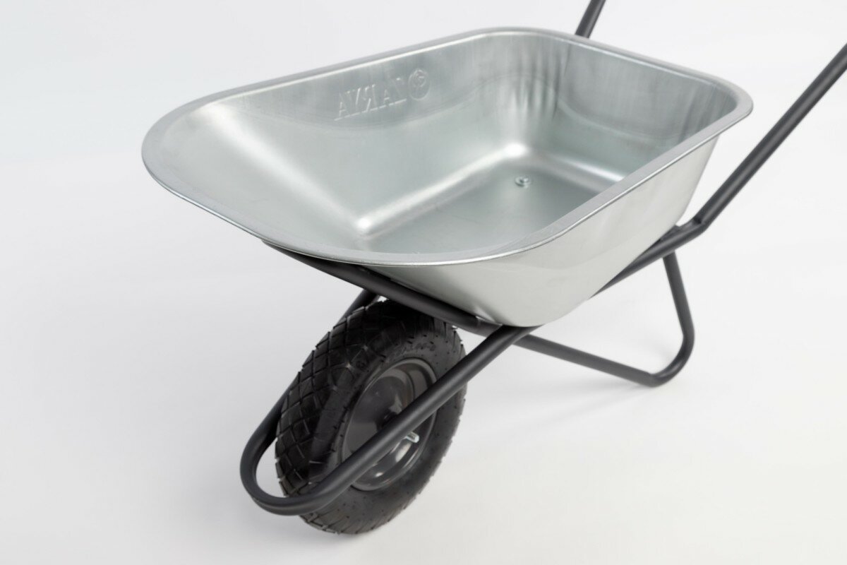 Купить Тачка садово-строительная 1-кол С 2-х позиционной рамой 100л кузов оцин.0,7мм пневмо КОЛ.4.00 заря