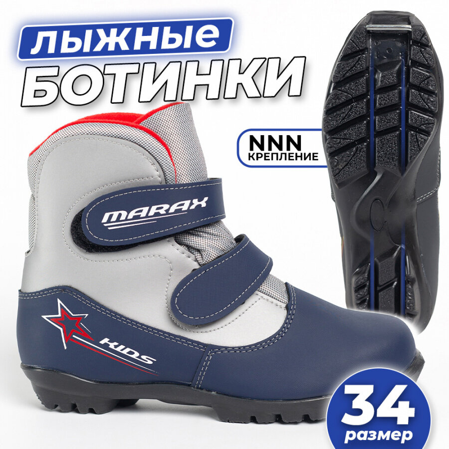 Ботинки лыжные MARAX MXN-Kids NNN цвет синий/серебро, размер 34