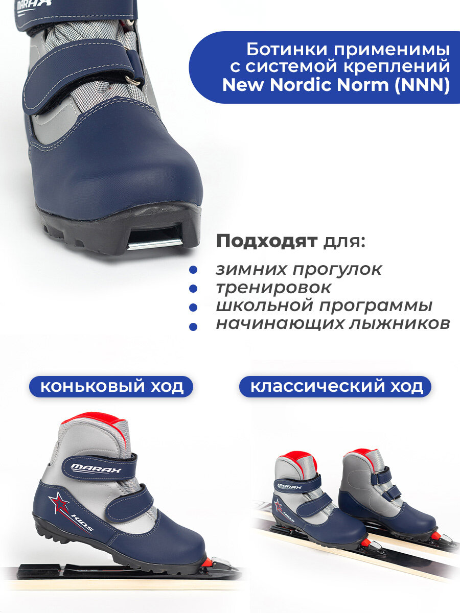 Ботинки лыжные MARAX MXN-Kids NNN цвет синий/серебро, размер 34
