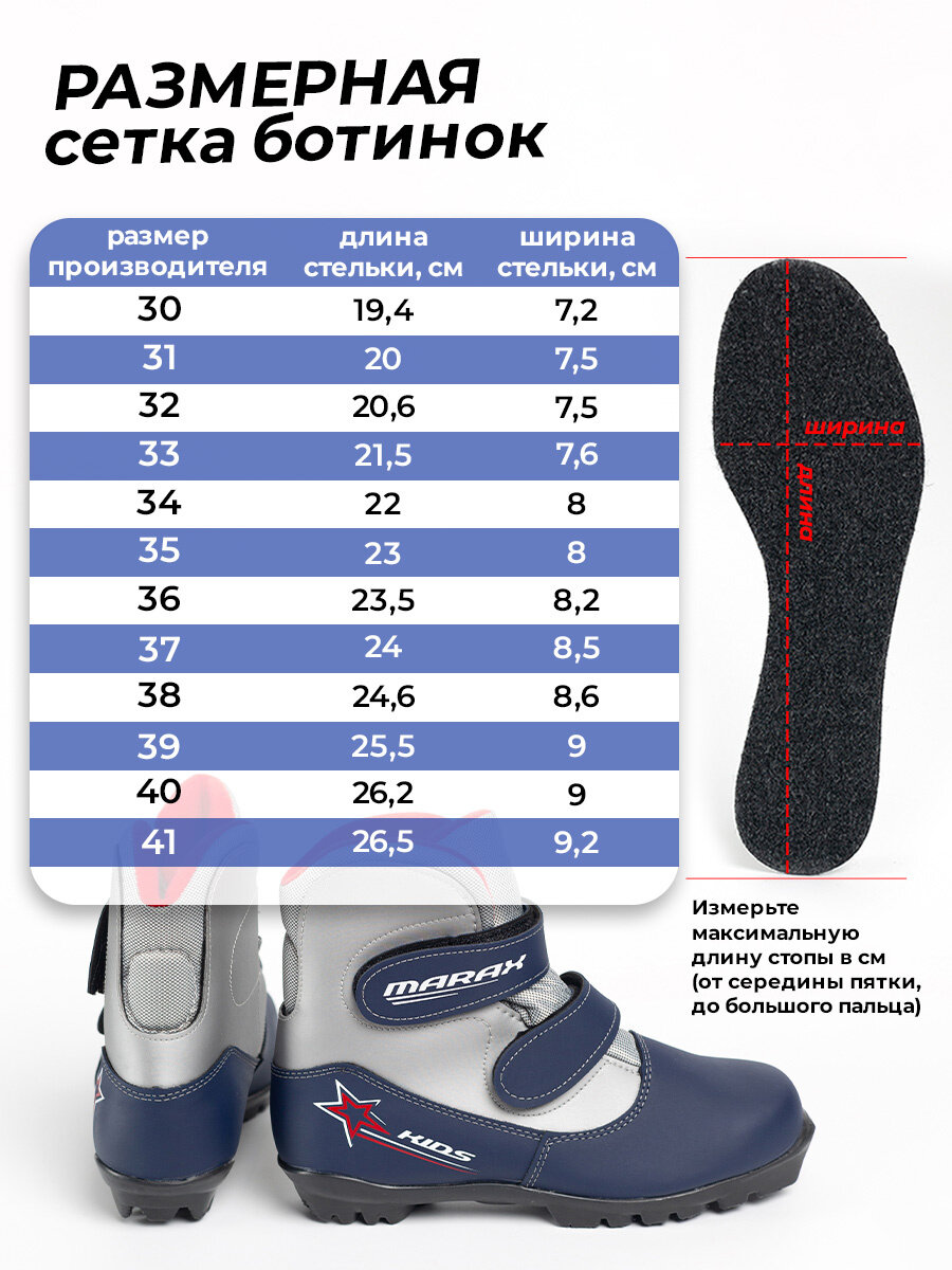 Ботинки лыжные MARAX MXN-Kids NNN синий/серебро, размер 30
