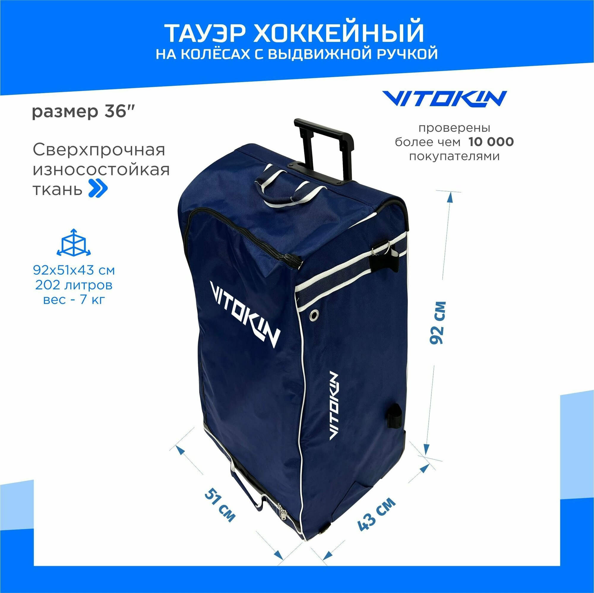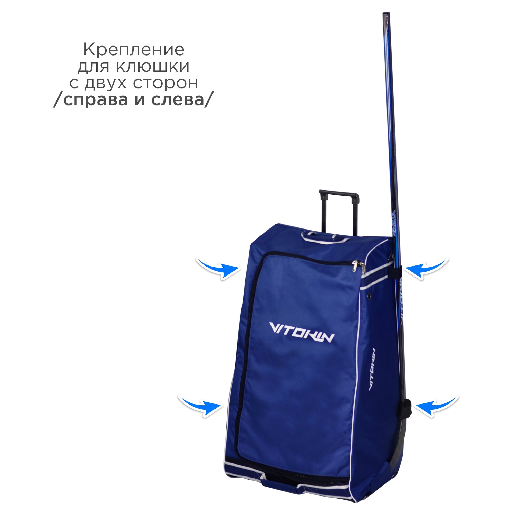 Баул хоккейный на колесах с выдвижной ручкой VITOKIN HOCKEY TOWER синий интересное: