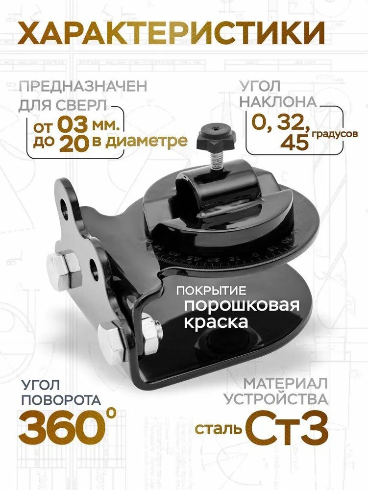 Заточник сверл для гриндеров, точило, для сверл до 20 мм в диаметре, основание 106х100 мм