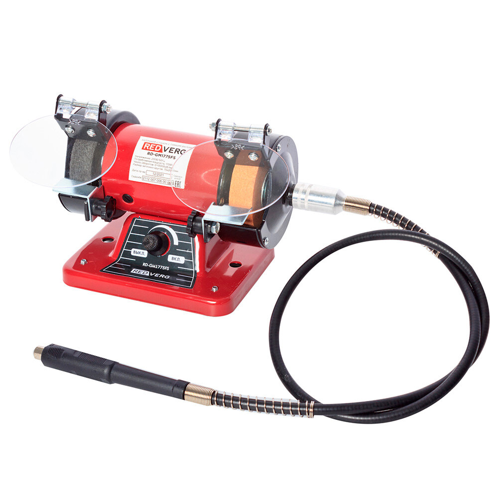 Точило RedVerg RD-GM1775FS с гибким валом (170Вт, 2круга 75х20х10мм, вал 102,5см 10000об/мин) 2.92кг интересное: