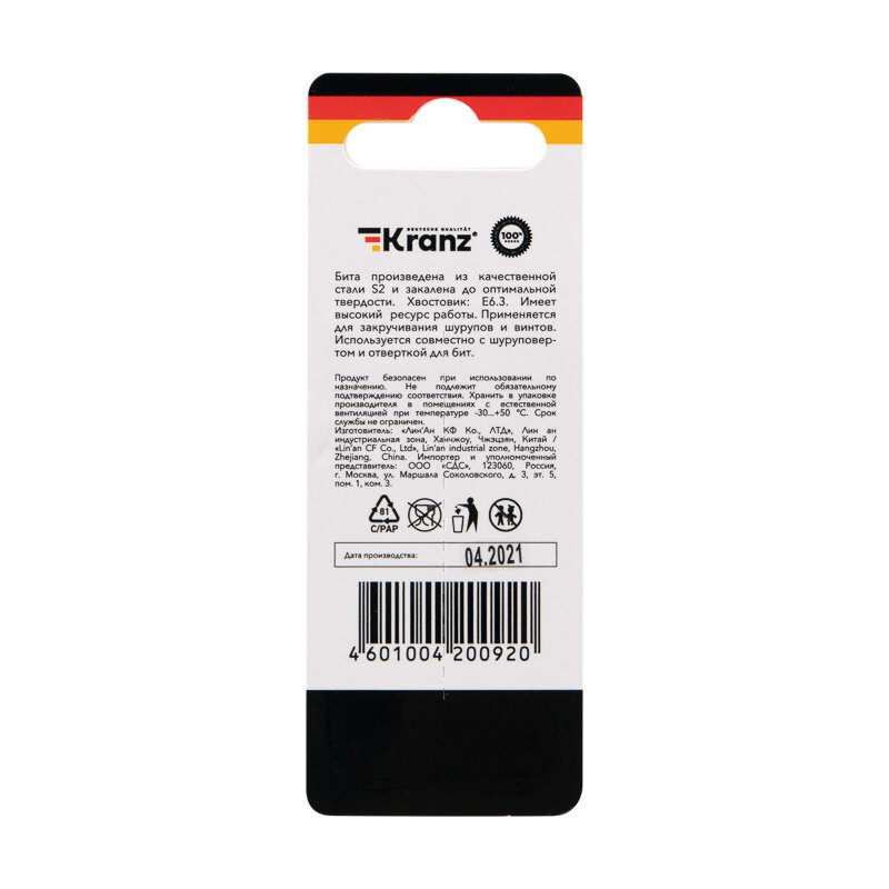 Бита для шуруповерта PH1х50 мм (2 шт./уп.) Kranz 1 упак арт. KR-92-0413-1 интересное: