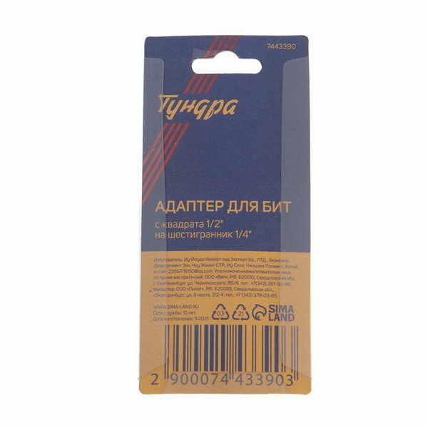 Адаптер для бит тундра, с квадрата 1/2" на шестигранник 1/4"