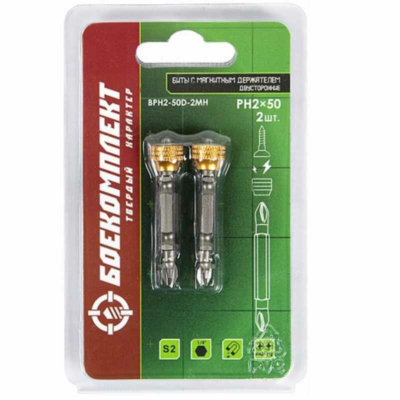 Купить Бита двухсторонняя со съемным магнитным держателем (2 шт; PH2; 50 мм; сталь S2) боекомплект BPH2-50D-2MH