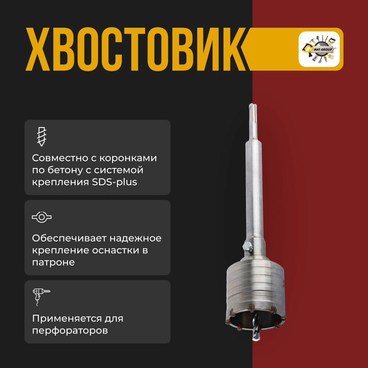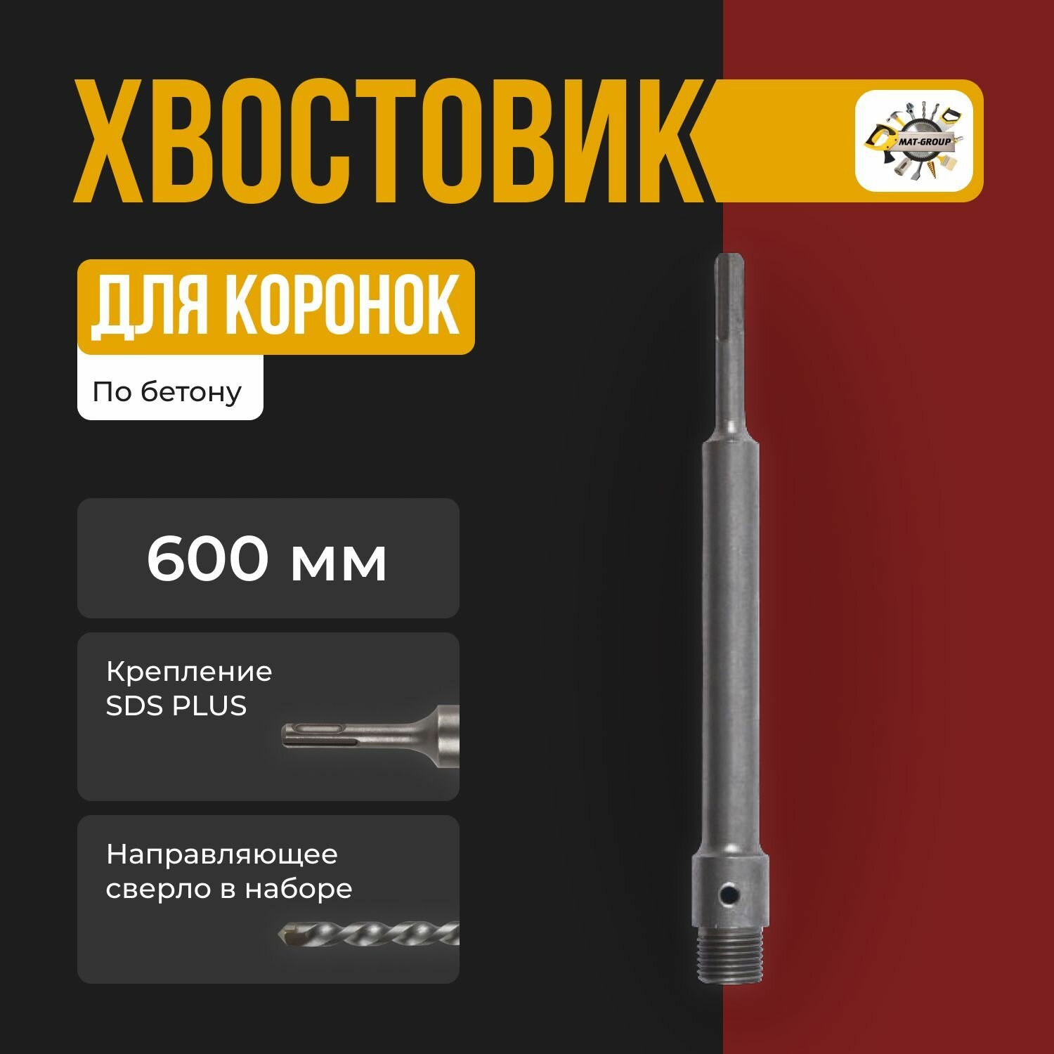 Удлинитель хвостовик для коронки SDS-PLUS 600 мм для перфоратора с направляющим сверлом интересное: