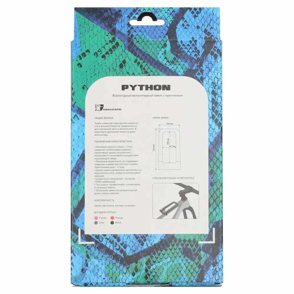 Замок велосипедный 210x14мм навесной всепогодный с креплением на раму черный Python, авангард 626BLACK (1 шт.)