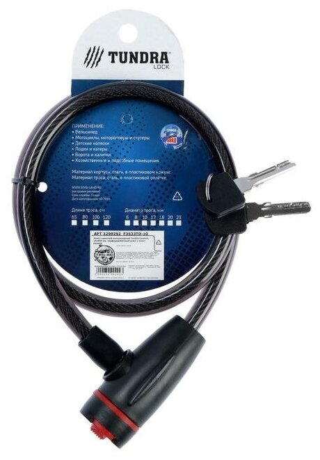 Замок навесной велосипедный тросовый, 10х800мм, 2 ключа интересное: