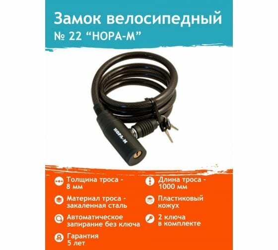 Велосипедный замок нора-м №22 ф8х1000 мм интересное: