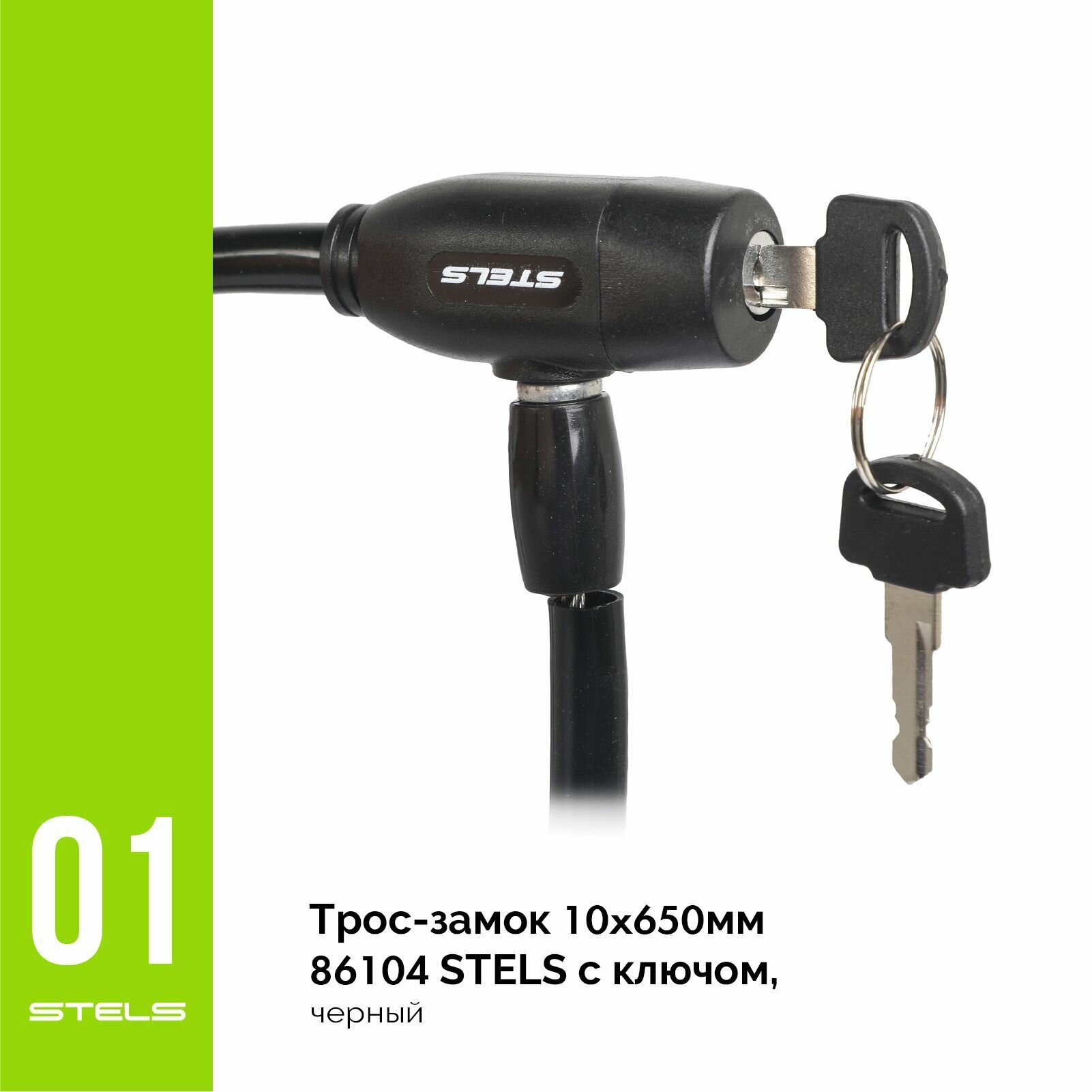 Купить Трос-замок STELS 10х650мм 86104 с ключом, чёрный NEW