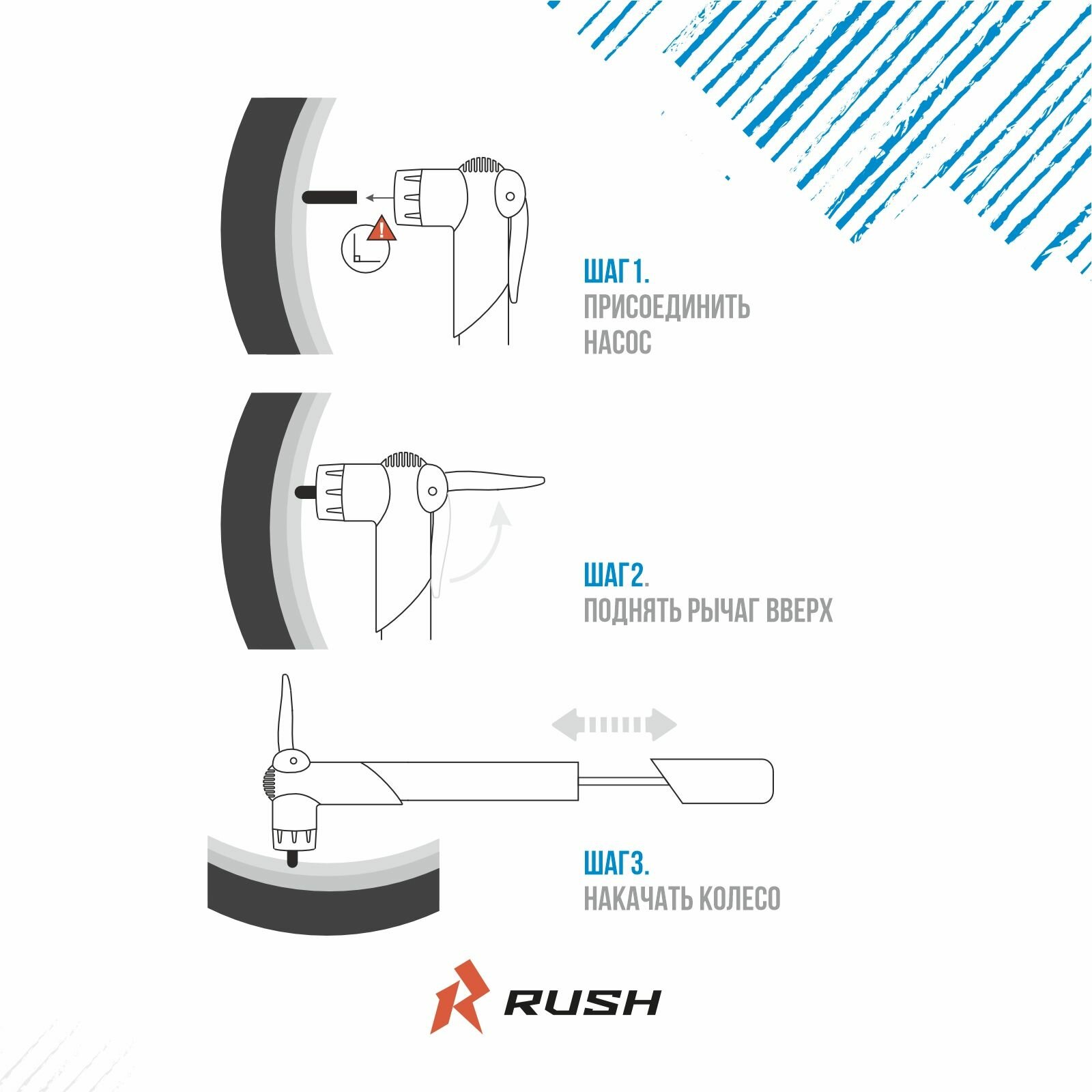 Насос ручной велосипедный 21x220 мм RUSH HOUR. Шланг велонасоса под ниппель AV/FV. интересное: