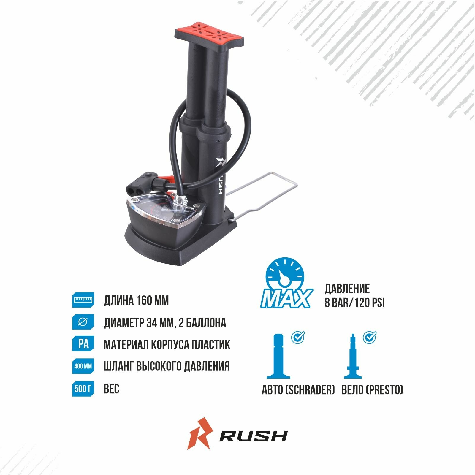 Rush Hour Насос ножной с манометром два баллона 34x160 мм, AV/FV