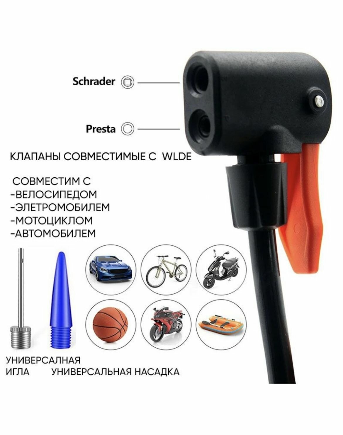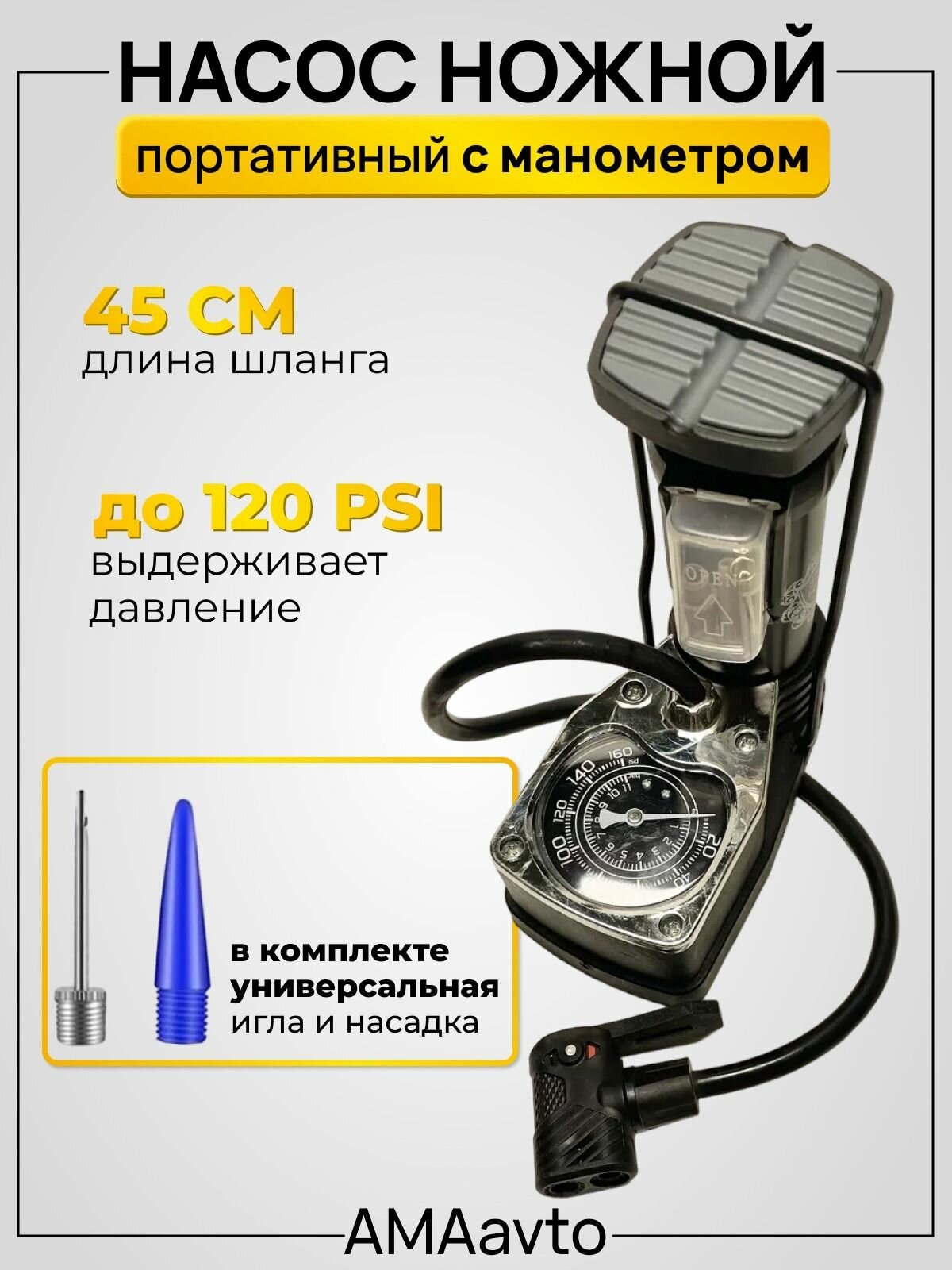 Насос ножной Foot Pump, портативный с манометром, подходит для клапанов Dunlop, Presta, Schrader интересное: